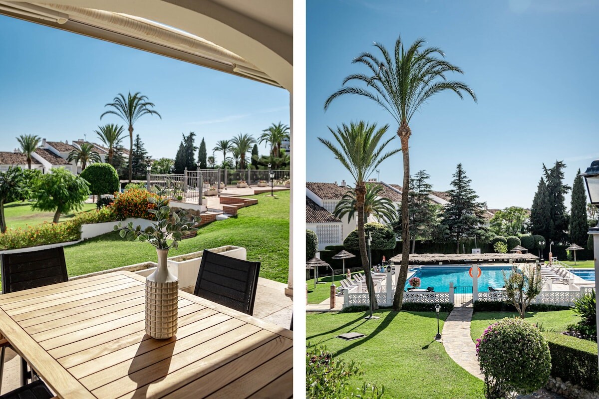 The property is located 3 m from Los Naranjos golf club golf course, 10 m from the bus station, 100 m from the from the restaurant, 100 m from the supermarket, 500 m from Mercadona supermarket, 600 m from Puerto Banus city, 800 m from Playa Puerto Banus sand beach, 6 km from Marbella city, 54 km from the airport. The house is situated in a well connected neighborhood in a suburb.The accommodation is equipped with the following items: garden, 20 m² terrace, barbecue, iron, internet (Wi-Fi), hair dryer, tennis court, central heating, air-conditioned, communal swimming pool, garage the same building, Tv, tv satellite (Languages: Spanish, English).