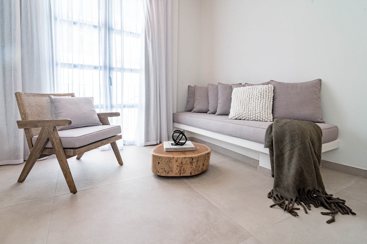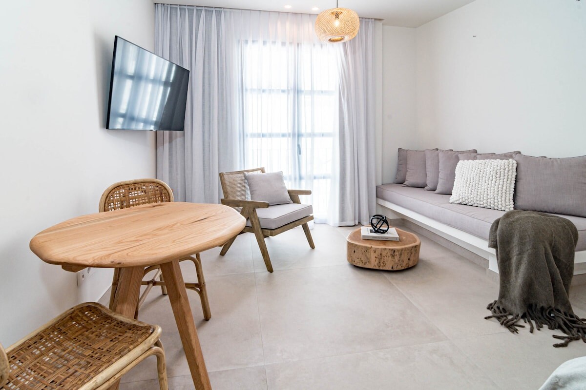 The studio is available for short term rental, from 1 day up to 45 days, for 2 people or families. We offer additional services such as daily housekeeping and concierge service. It is designed in a contemporary and "chill" style using warm and soft fabrics authentic to the area, offering a bright and clean space.The fully fitted kitchen is equipped with kettle, toaster, coffee maker, fridge, dishwasher, built-in electric oven, a hob and microwave. The studio is equipped with washing machine, Tv, an iron and ironing board supplied for your convenience, cutlery, dishes and cleaning products.