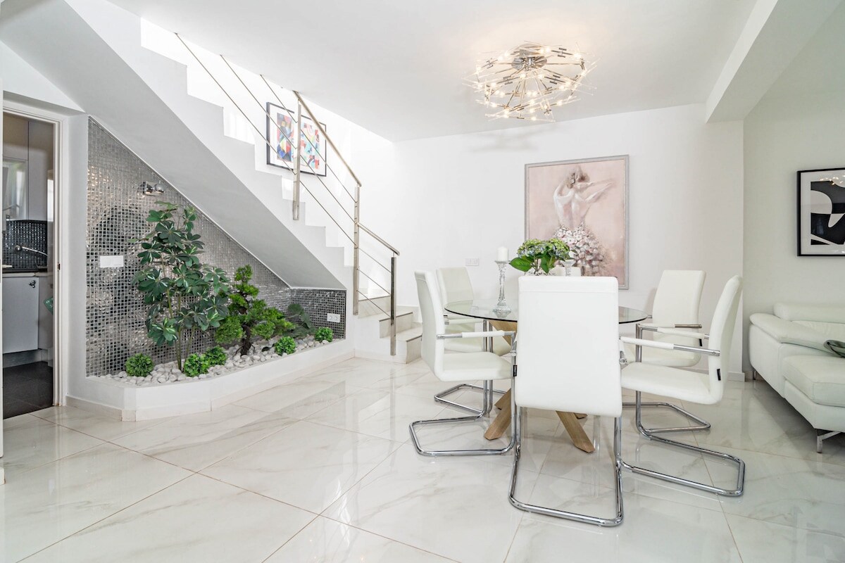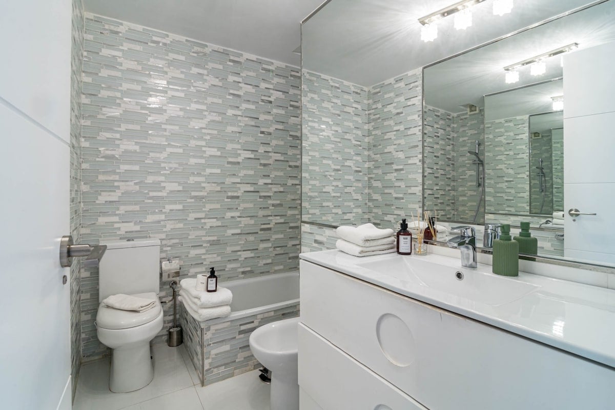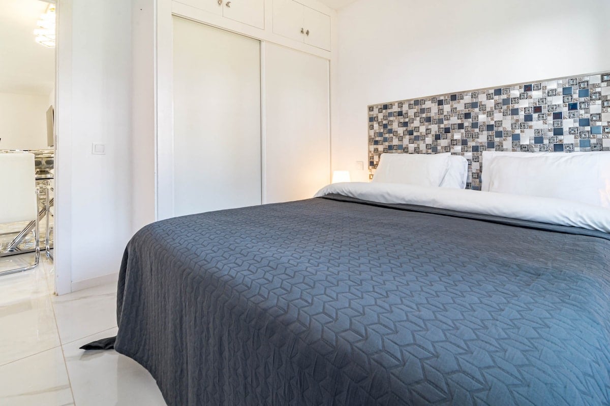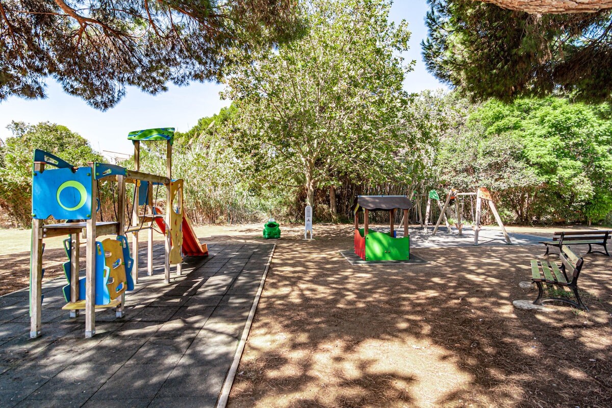 The charming beach townhouse in Estepona is just a 3-minute walk (250m) from Salduna Beach Club and the scenic Senda Litoral beach walk. This spacious and comfortable 100 m² property boasts a private rooftop terrace with mountain, garden, and partial ocean views. It has 3 bedrooms, 3 bathrooms, and can accommodate up to 6 people.The townhouse is located in a fantastic area with numerous restaurants, supermarkets, and a bus stop within walking distance. The community offers two large swimming pools and a garden, perfect for relaxation and family-friendly fun.