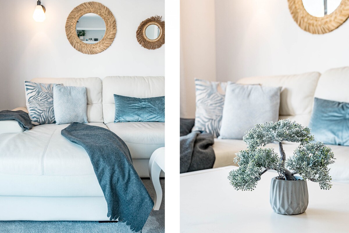 The fully equipped American-style kitchen is a highlight, featuring essential appliances like a fridge, freezer, dishwasher, oven, microwave, coffee machine, and all necessary kitchenware. Enjoy preparing meals together or quick snacks with ease. Additional conveniences include an iron and a cozy fireplace for those cooler evenings.
