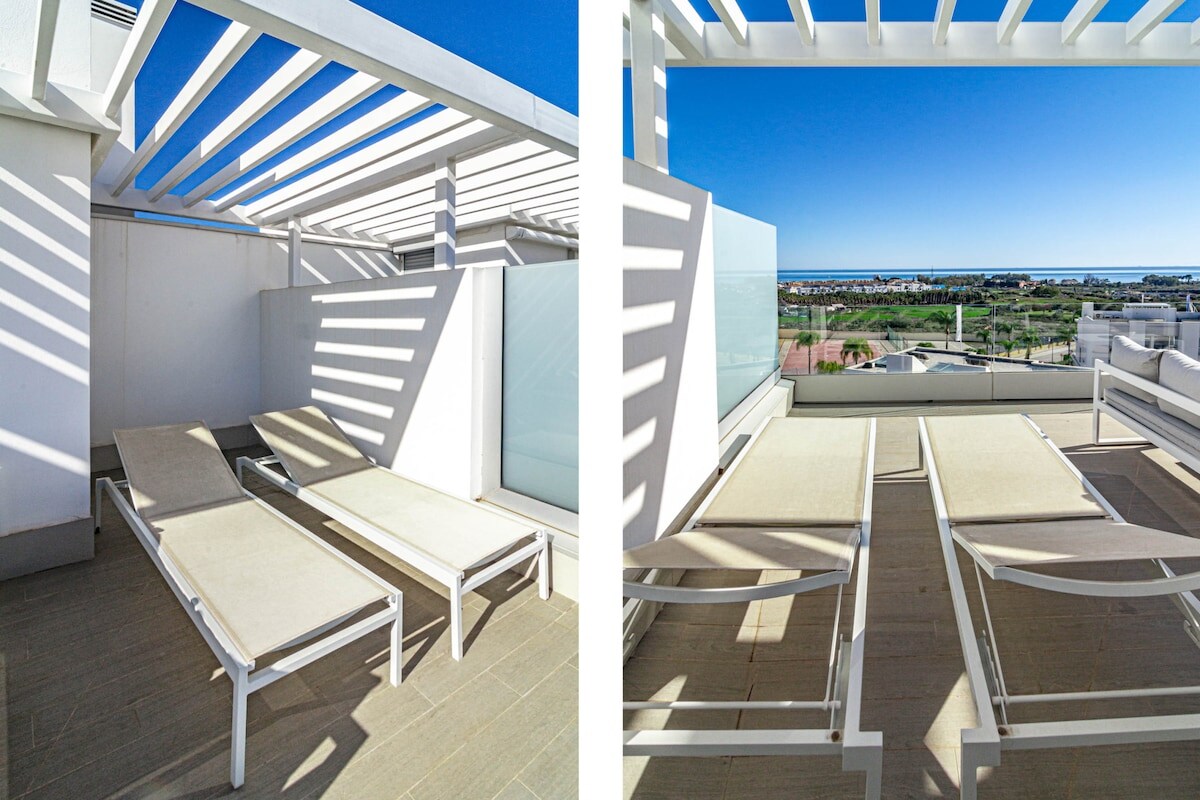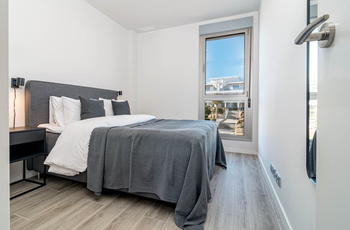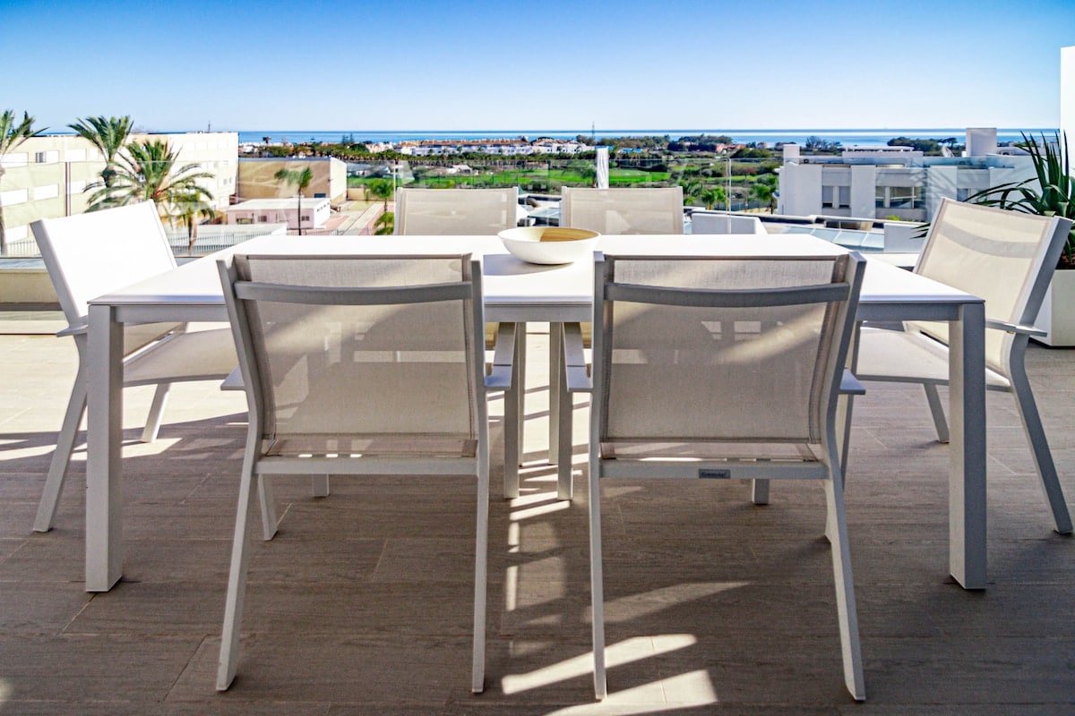 The Estepona flat can accommodate up to 6 people and features 3 bedrooms. The flat is 83 m², newly constructed, and comfortably furnished. It offers views of the garden and the mountains.