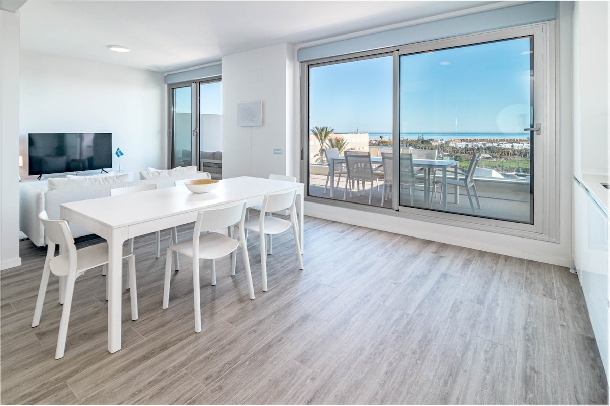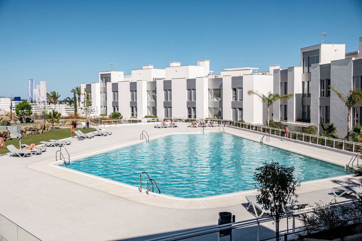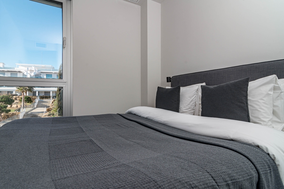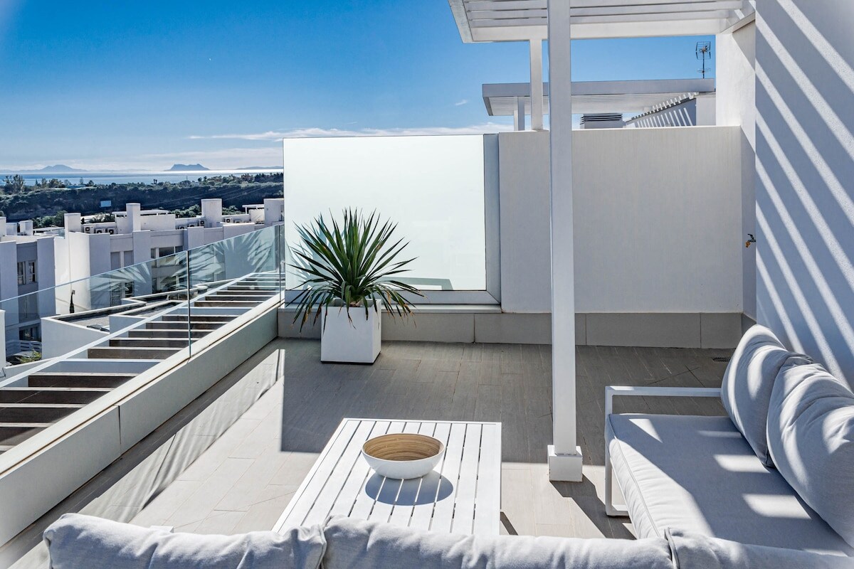 The Estepona flat can accommodate up to 6 people and features 3 bedrooms. The flat is 83 m², newly constructed, and comfortably furnished. It offers views of the garden and the mountains.