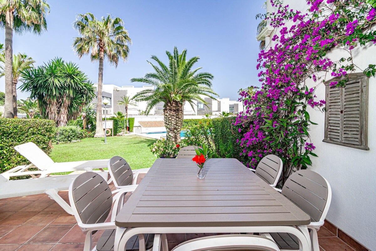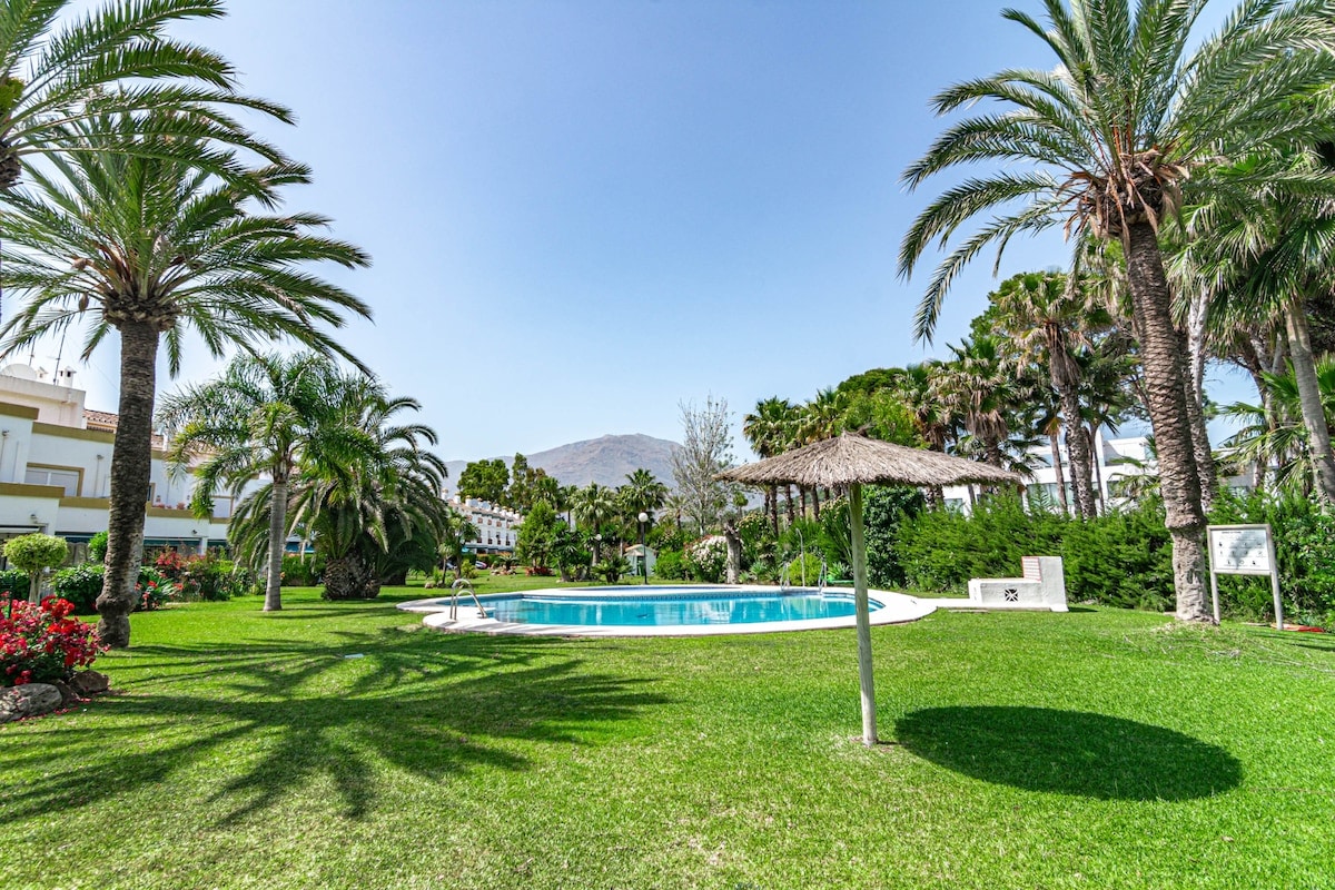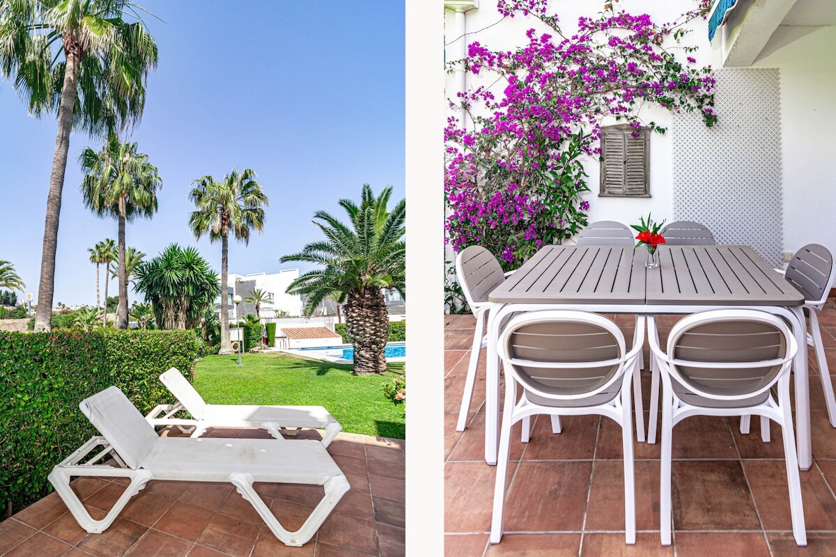 The accommodation is equipped with the following items: garden, garden furniture, terrace, washing machine, fireplace, iron, internet (Wi-Fi), balcony, central heating, air-conditioned, swimming pool communal + children's, open-air parking in the same building, TV, satellite TV (Languages: Spanish, English, German, Dutch, Swedish, Norwegian).