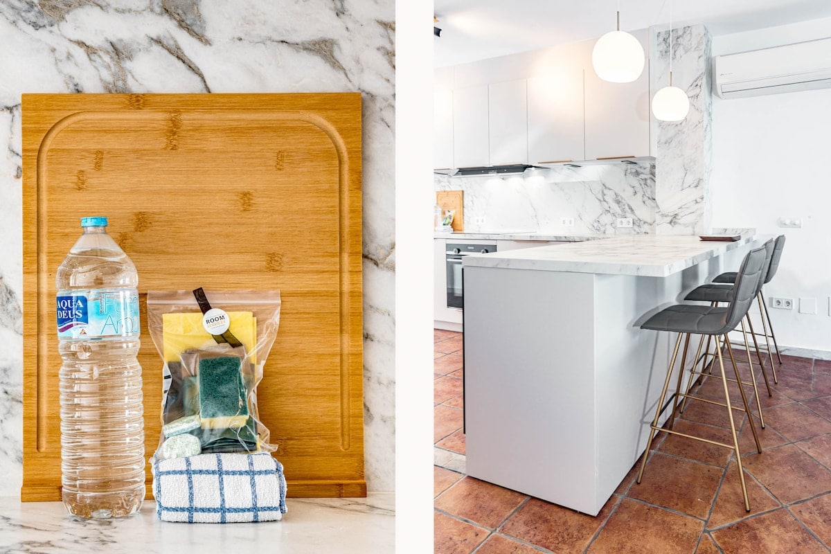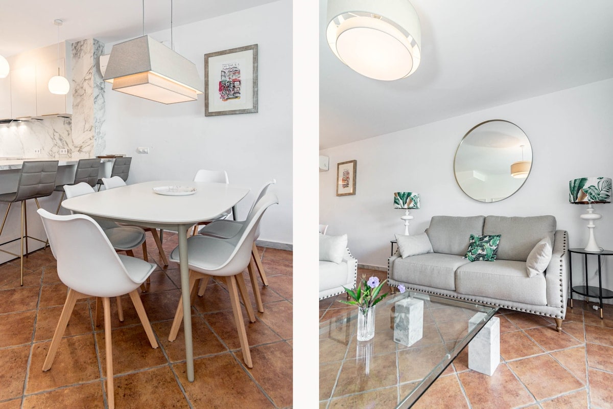 I stayed in this house with my family in the beginning of November. House it self is beautiful. All 3 rooms have own bathroom. There is a big pool just outside from the terrace and lovely beach in the end of garden. See view is only from 3rd floor balcony. You need to have a car if you book this house. It is located just next to A-7 motorway, so there is easy access to all directions. Nearest grocery strores (Aldi and Mercadona) are few kilometers away and you can find some restaurants (Sushi and burger King) and a cafeteria there next to them. Otherwise to the nearest restaurants there is about 10 minutes drive. Traffic noise doesn't bother inside the house if the windows are closed, but you can hear it to the terrace. There is about 3 km walk to Estepona marina and the street along the beach is really nice. There is 1 restaurant on the beach about 1 km away. Kitchen is really poorly equipped, most of the pans didn't work with induction stove. So cooking was quite challenging.