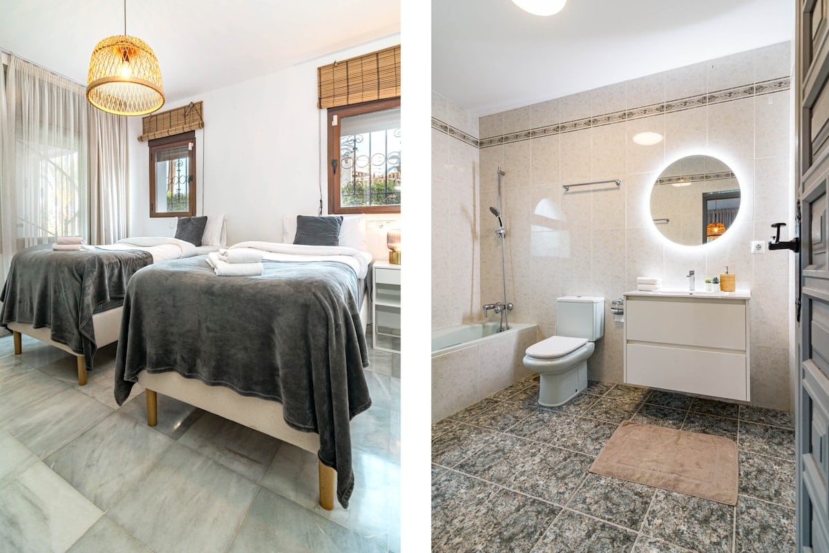 The villa in Marbella has 6 bedrooms and capacity for 10 people. Accommodation of 280 m² comfortable and is spacious, located on golf-course, It has views of the mountain and the garden.