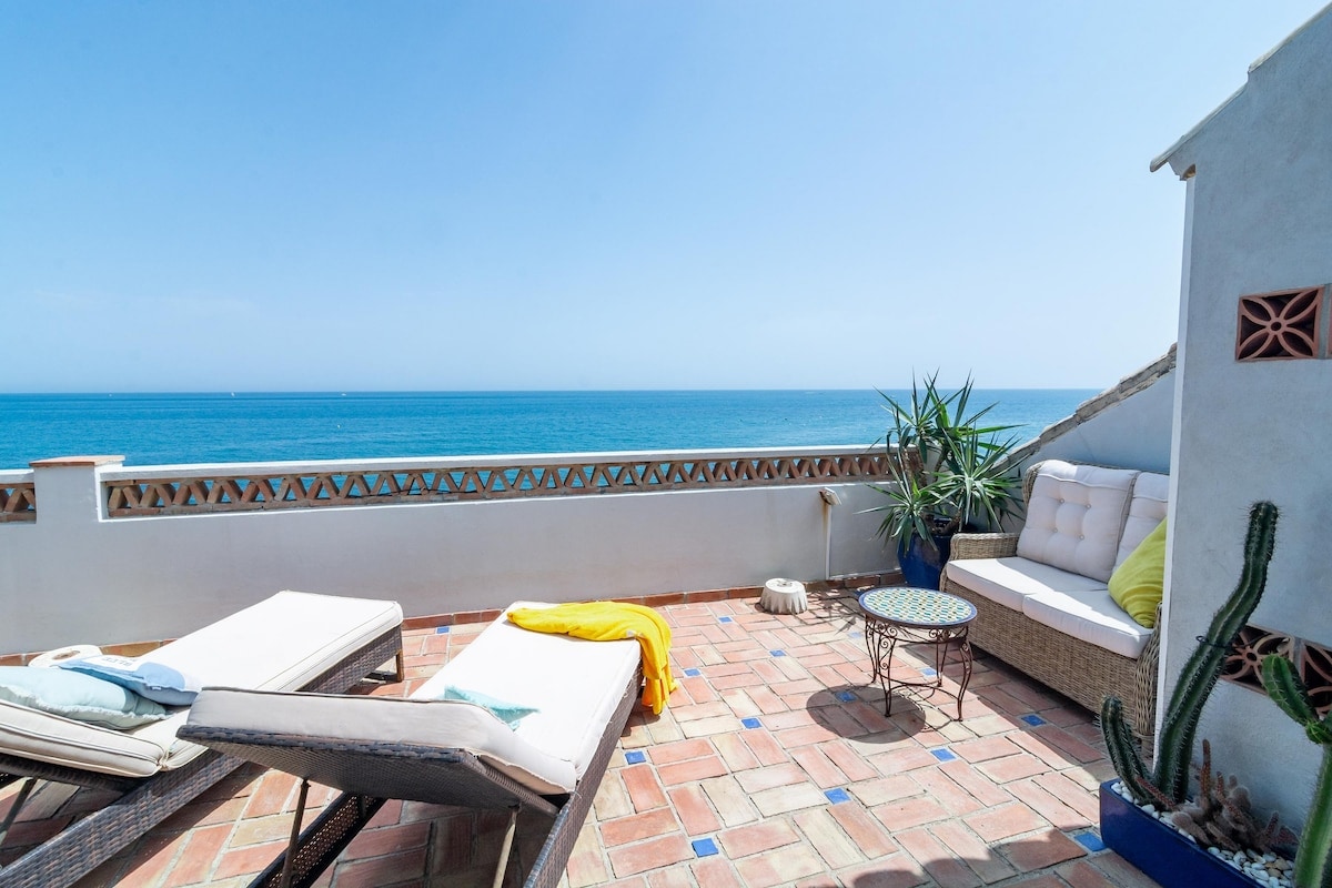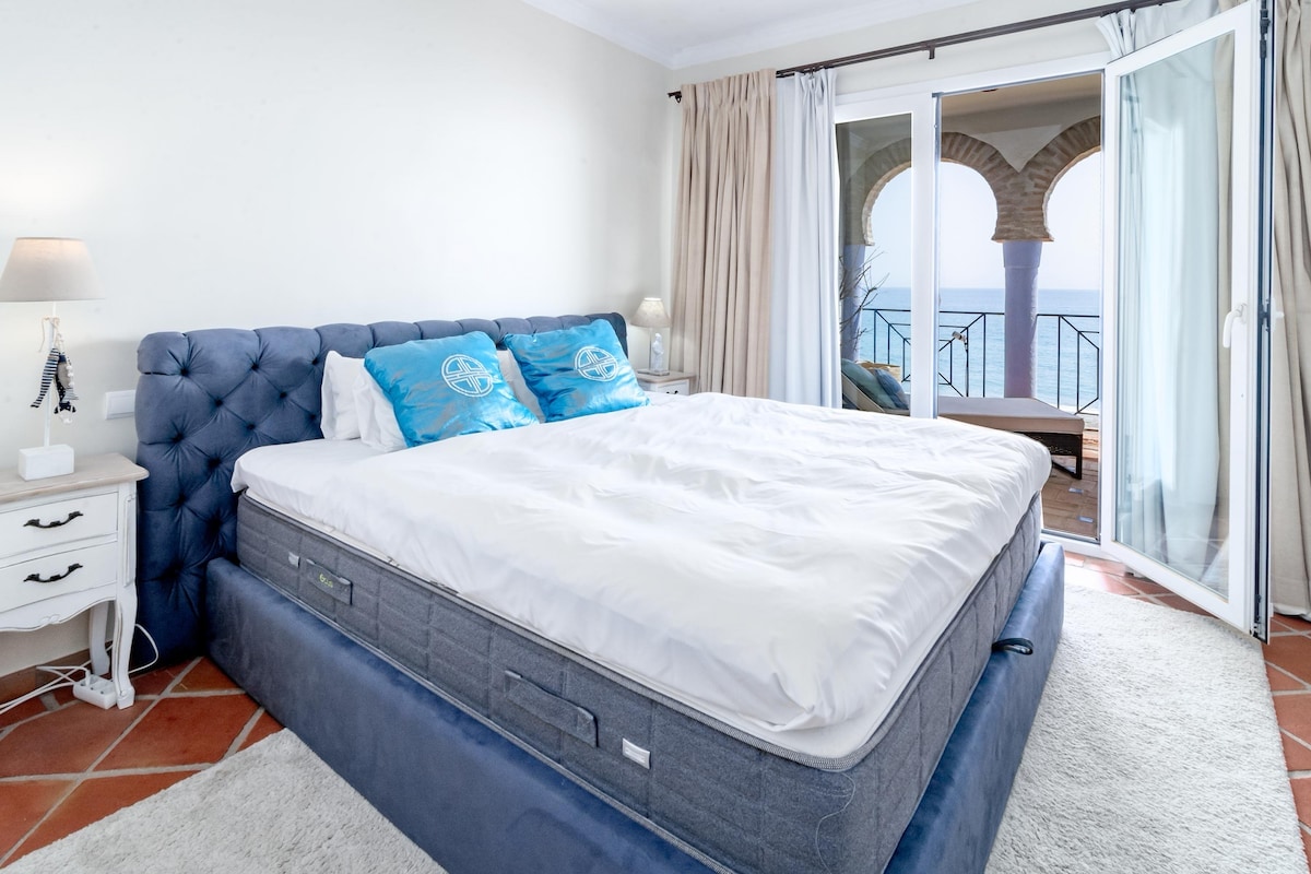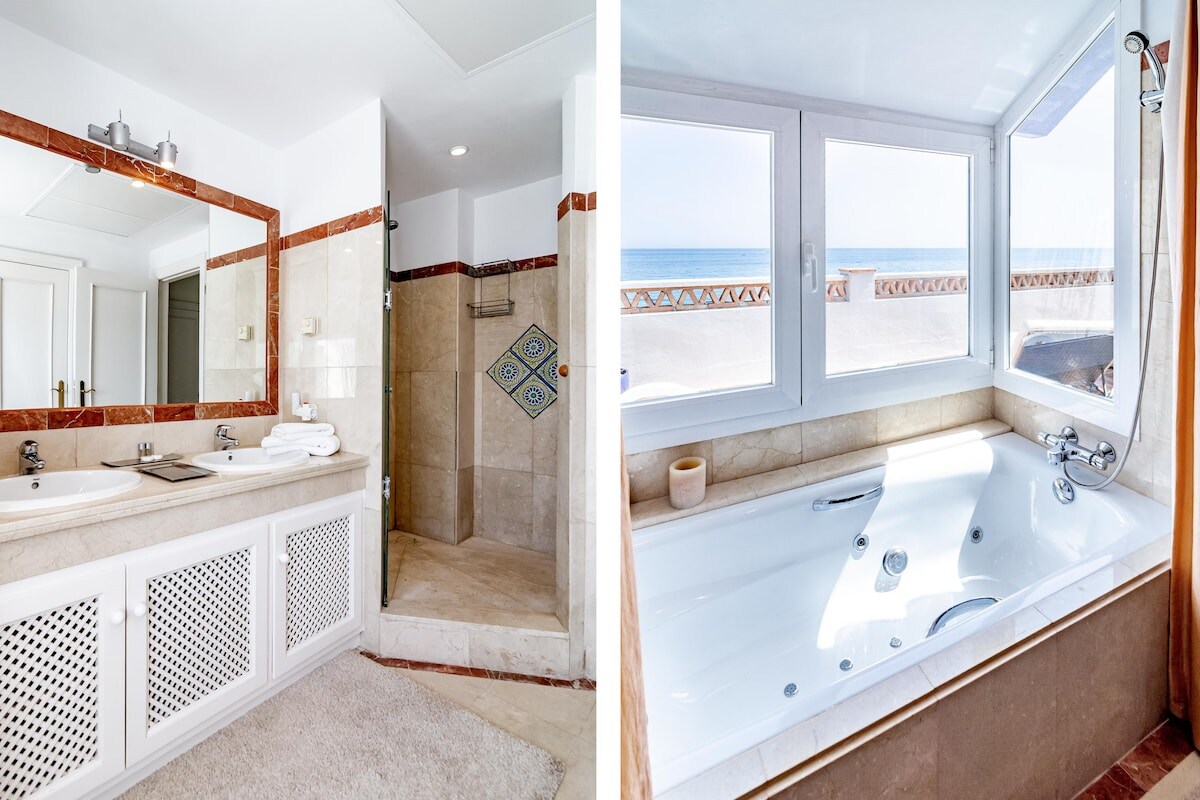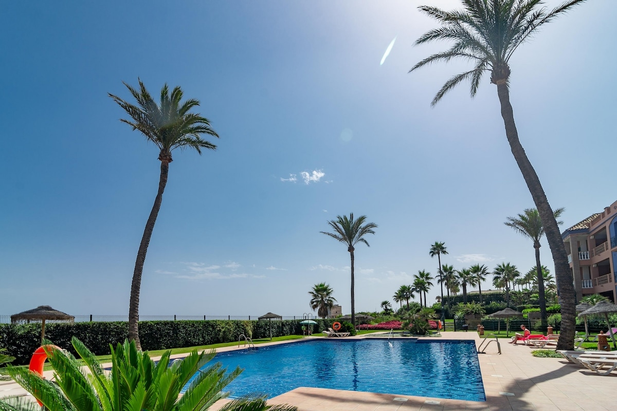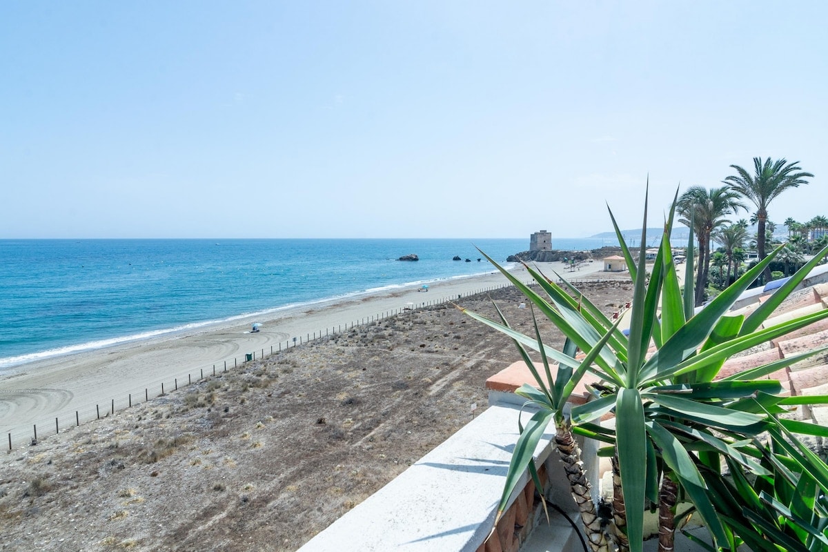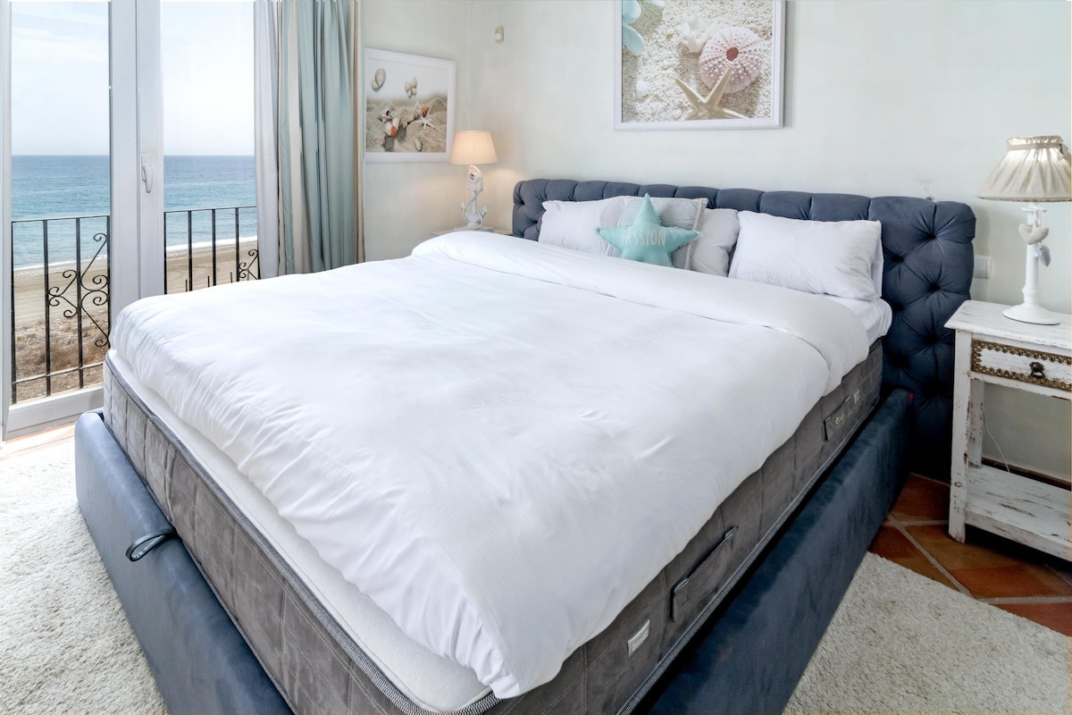 The property is located 10 m from La Paloma sand beach, 300 m from Chiringuito El Sal from the restaurant, 3 km from Mercadona supermarket, 4 km from La Duquesa city, 10 km from Estepona city, 32 km from Puerto Banus city, 35 km from Gibraltar airport airport, 35 km from Gibraltar city, 40 km from Marbella city. The house is situated in a residential neighborhood next to the sea.The accommodation is equipped with the following items: lift, garden, 50 m² terrace, barbecue, iron, internet (Wi-Fi), hair dryer, balcony, central heating, air-conditioned, communal + children's swimming pool, garage in the same building, 1 TV, TV satellite (Languages: Spanish, English).