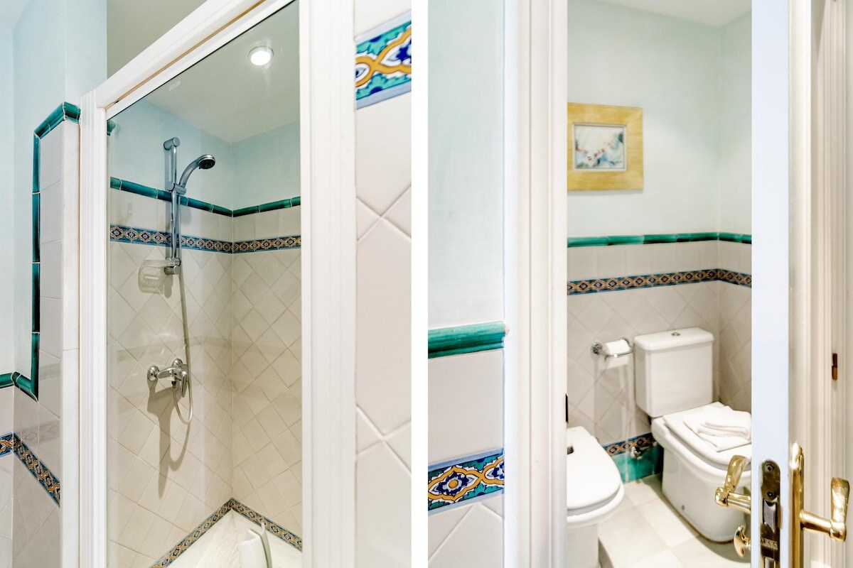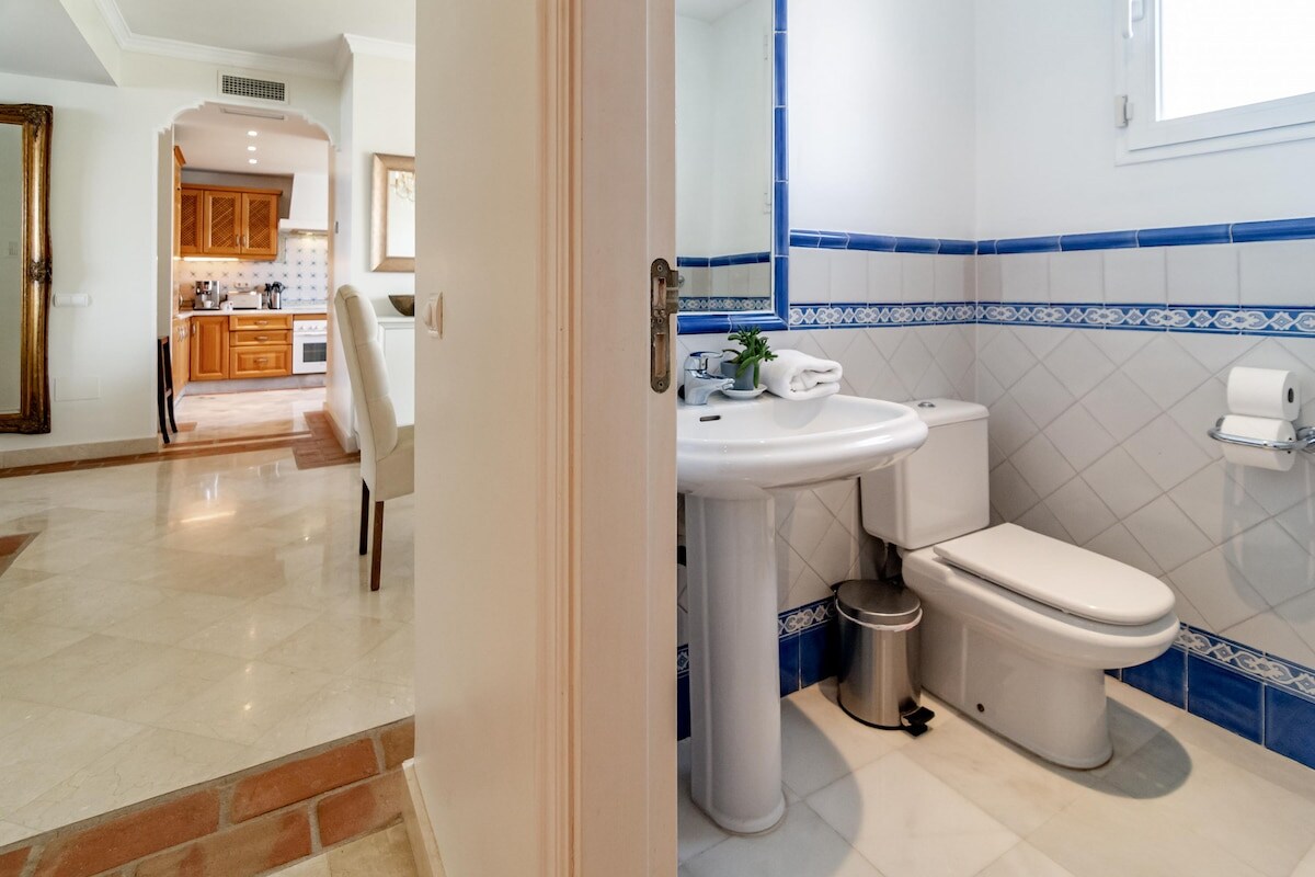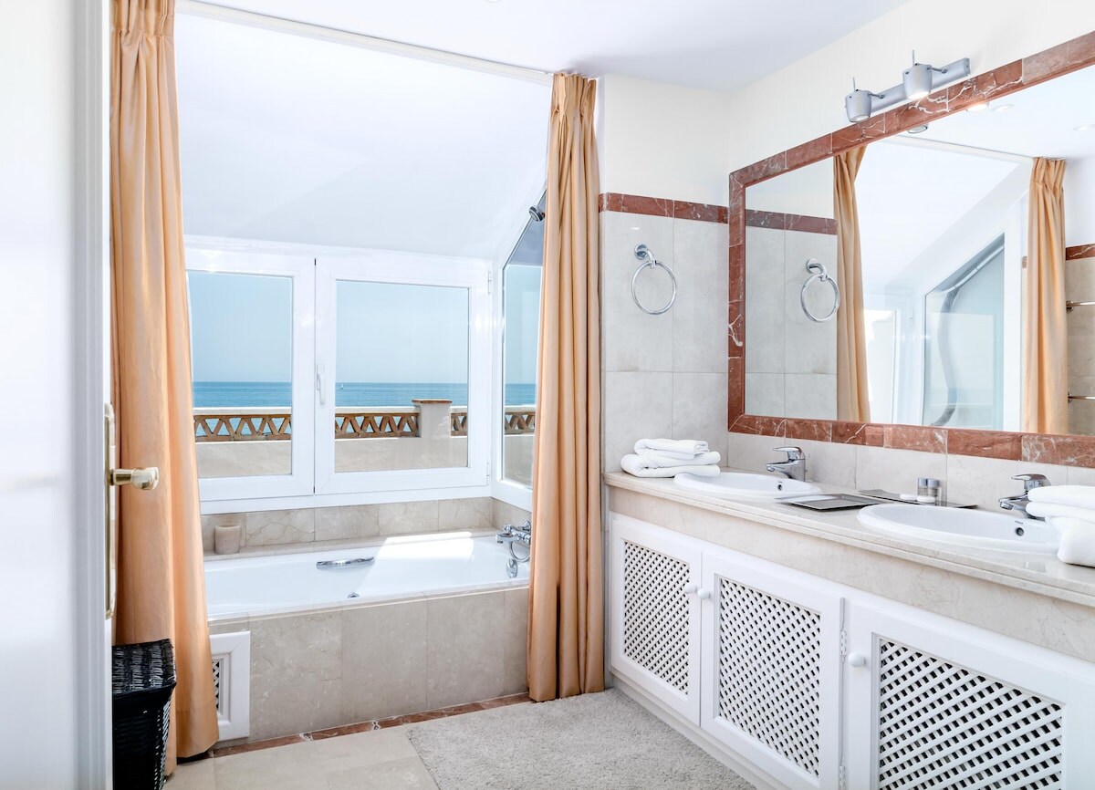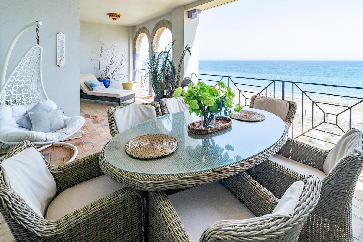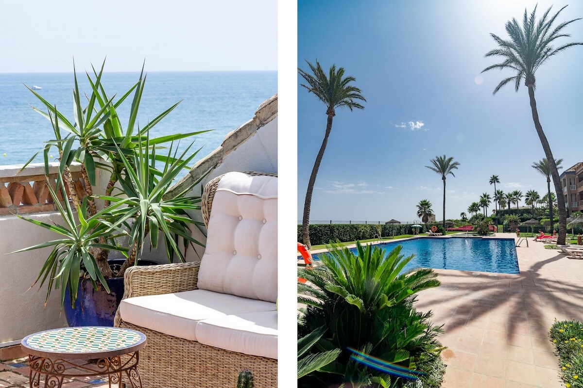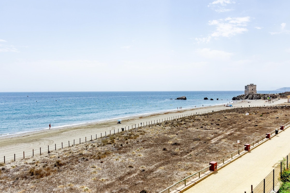The property is located 10 m from La Paloma sand beach, 300 m from Chiringuito El Sal from the restaurant, 3 km from Mercadona supermarket, 4 km from La Duquesa city, 10 km from Estepona city, 32 km from Puerto Banus city, 35 km from Gibraltar airport airport, 35 km from Gibraltar city, 40 km from Marbella city. The house is situated in a residential neighborhood next to the sea.The accommodation is equipped with the following items: lift, garden, 50 m² terrace, barbecue, iron, internet (Wi-Fi), hair dryer, balcony, central heating, air-conditioned, communal + children's swimming pool, garage in the same building, 1 TV, TV satellite (Languages: Spanish, English).