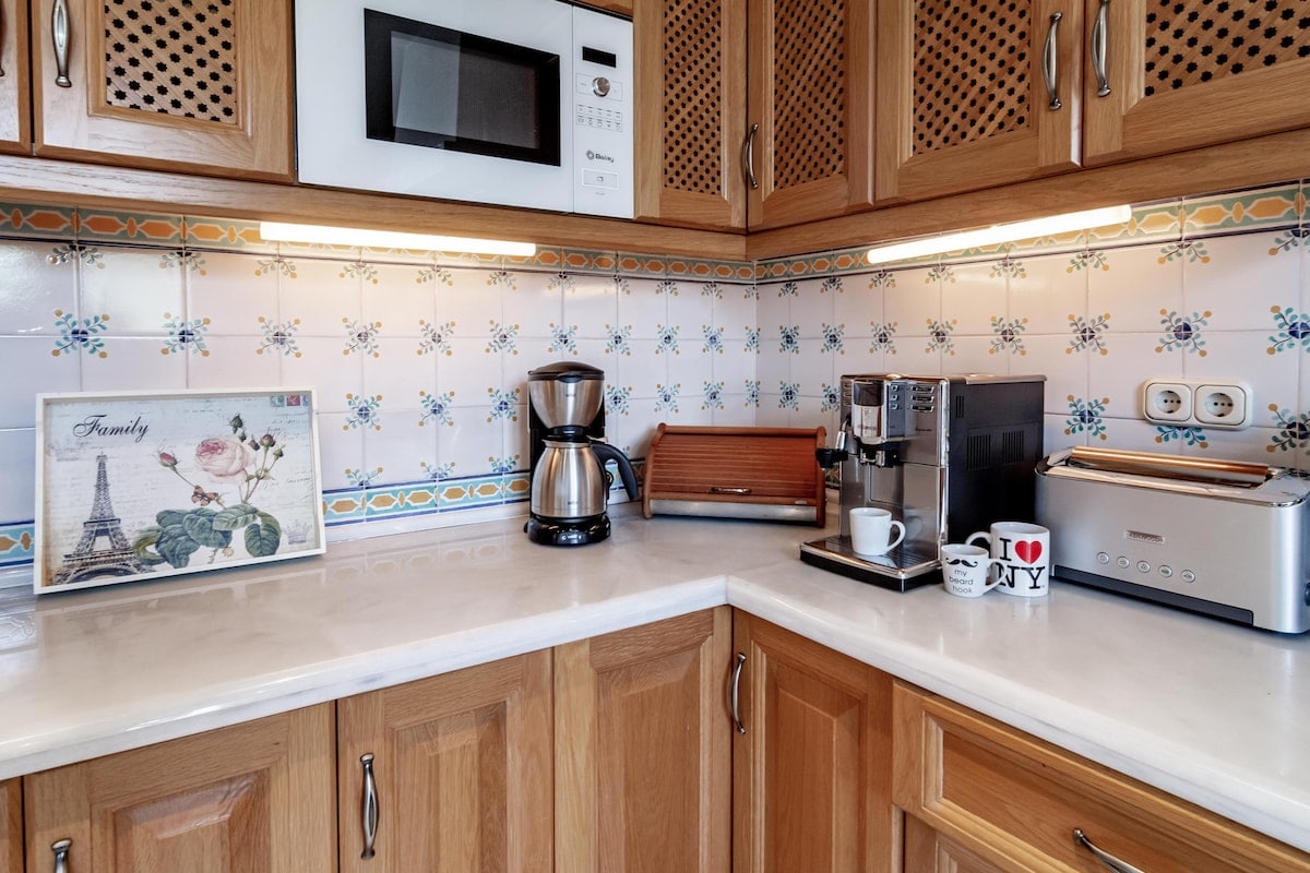 We had a super nice apartment with all the comforts ( 2 couches with 4 TV chairs and 2 separate TV chairs) in a beautiful quiet complex. The heating/air conditioning works perfectly. Also that we had an elevator to the apartment was extremely pleasant (unfortunately no underground parking space , which would have been very beneficial in the rain). Since we had our adult grandchildren with us, we were very grateful for the beautiful living/bedroom with its own spacious bathroom and roof terrace on the 1st floor. So everyone really had their own area. The beds were extremely comfortable , we felt extremely comfortable from the 1st day and already miss the magnificent view. You can take relaxing walks directly on the sea and visit 2 beach bars on foot. Communication with room service also worked flawlessly.