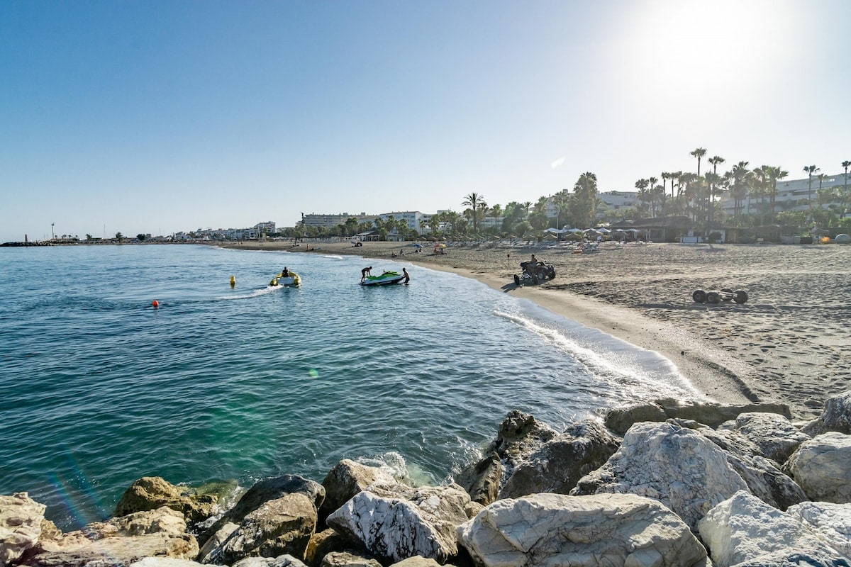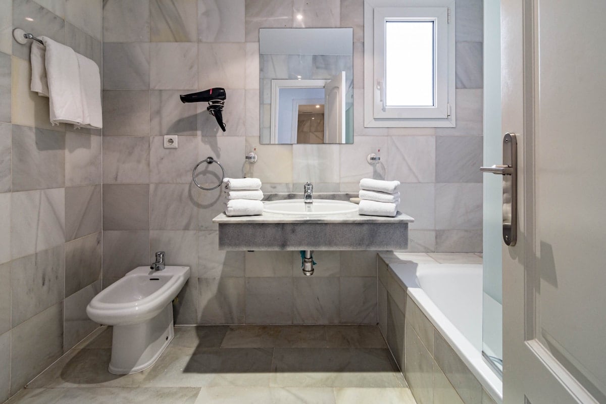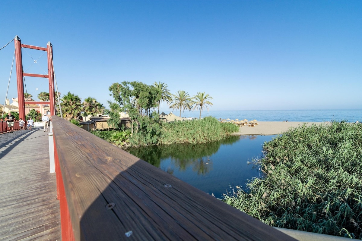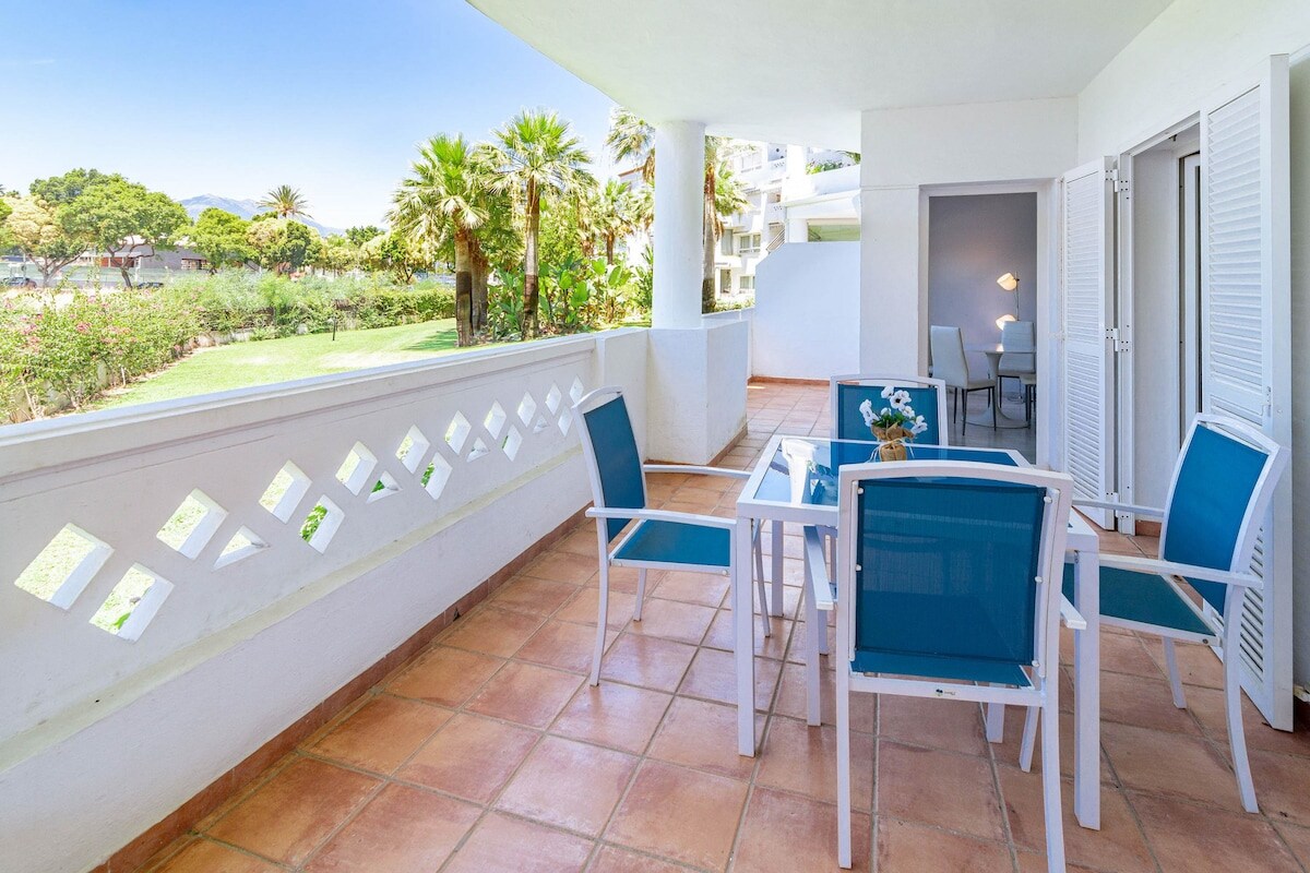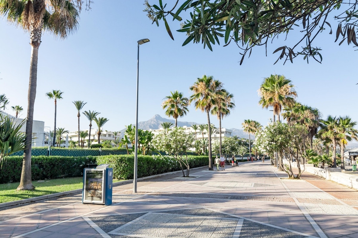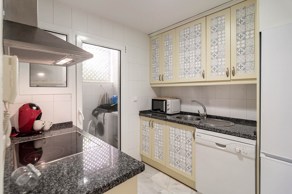 The property is located 50 m from the sand beach "Playa Puerto Banus", 200 m from the restaurant, 300 m from the supermarket "El Corte Ingles", 300 m from the city "Puerto Banus", 3 km from the thermal springs "Ocean Club Marbella", 4 km from the golf course "Aloha Golf Club", 8 km from the city "Marbella", 70 km from the international airport "Malaga Airport", and it is located in a well-connected zone and in a suburb.The accommodation is equipped with the following items: lift, garden, 30 m² terrace, washing machine, iron, internet (Wi-Fi), hair dryer, balcony, central heating, air conditioning, communal swimming pool, garage, and TV.