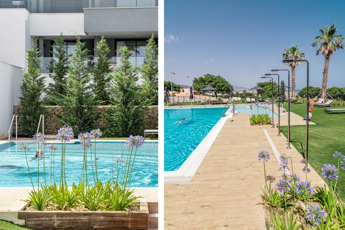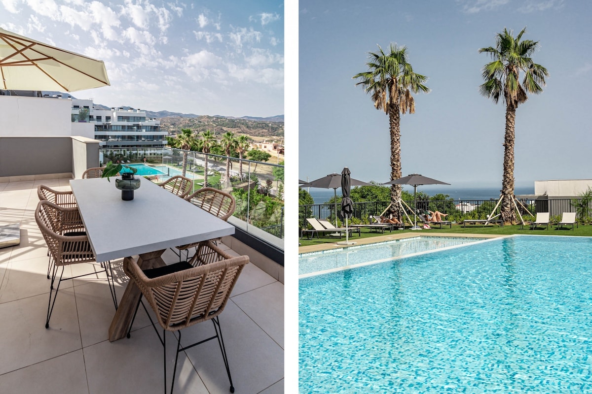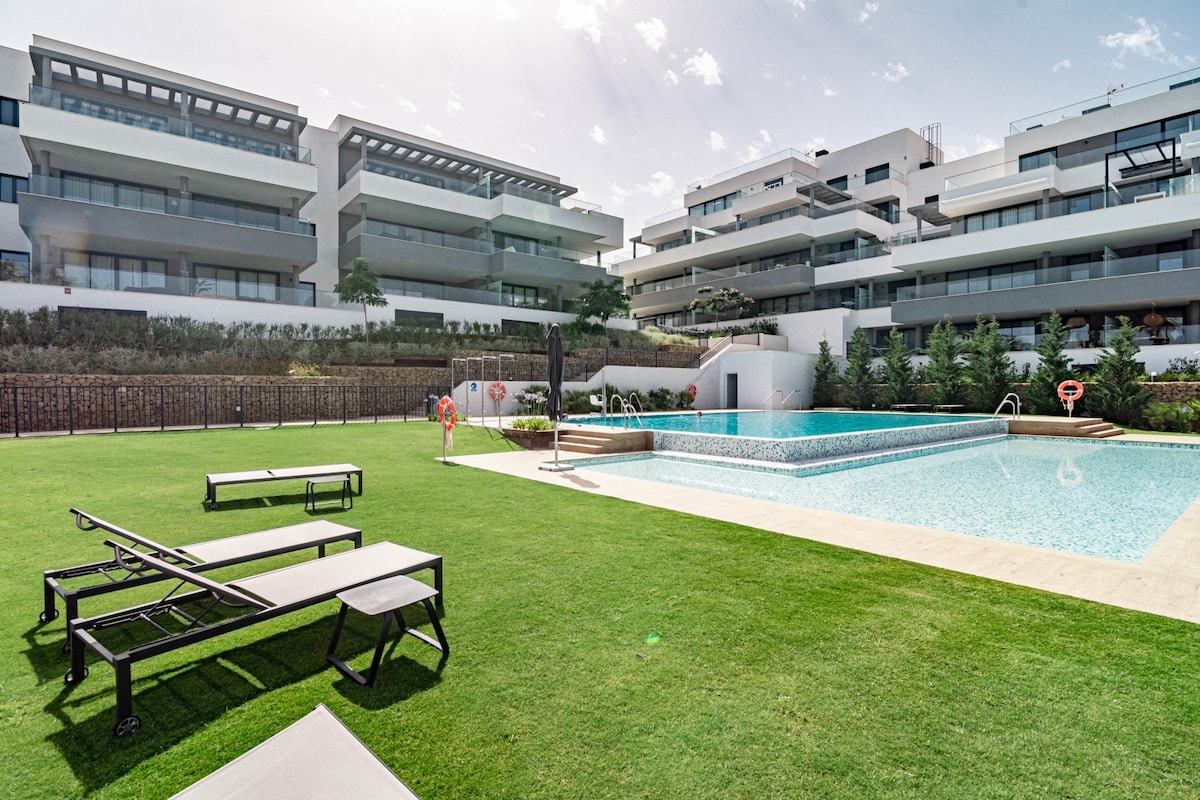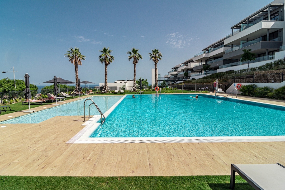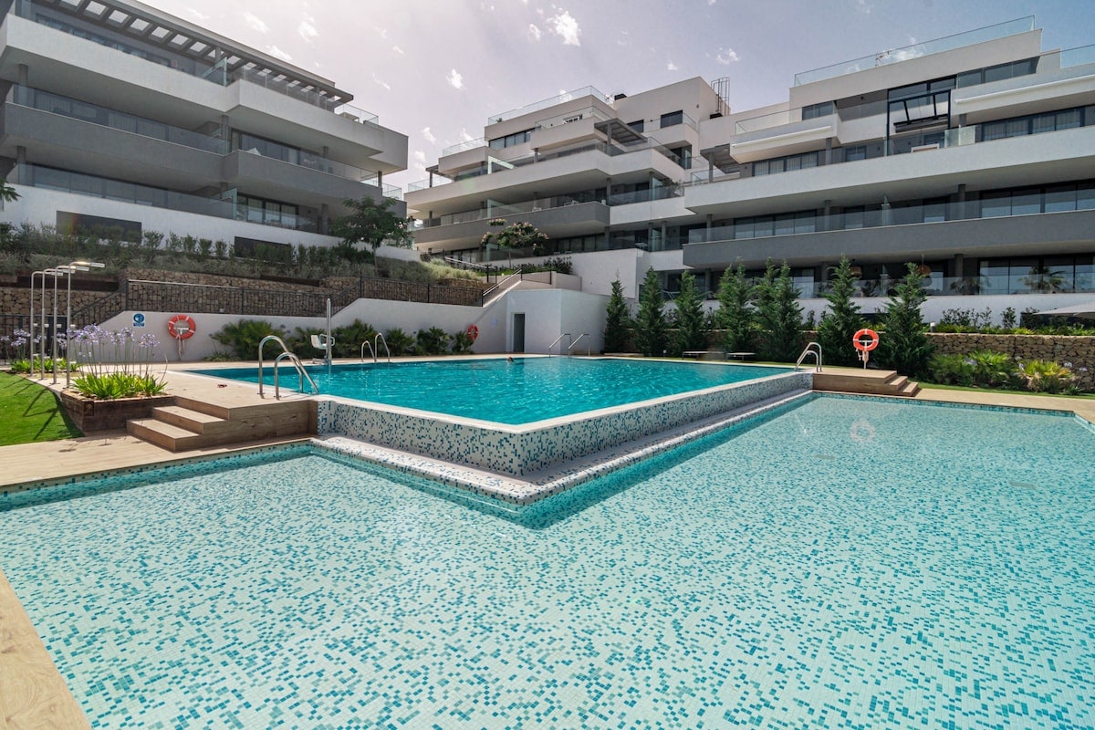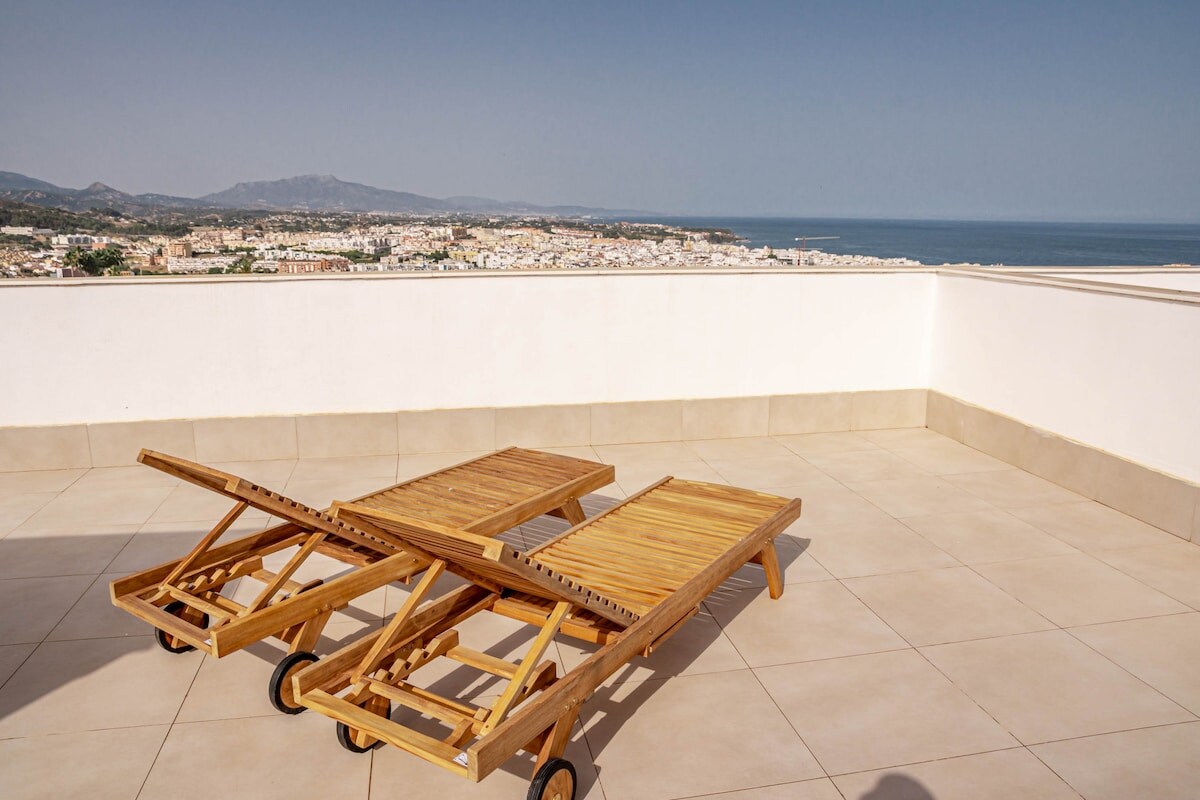 The outdoor pool is just outside your door and can be enjoyed all year long. The community of Mesas Homes also has a heated indoor pool and gym for you to use at your leisure (located in another building). The building is located in a new neighbourhood with gorgeous views of the town of Estepona, sea, and mountain views.
