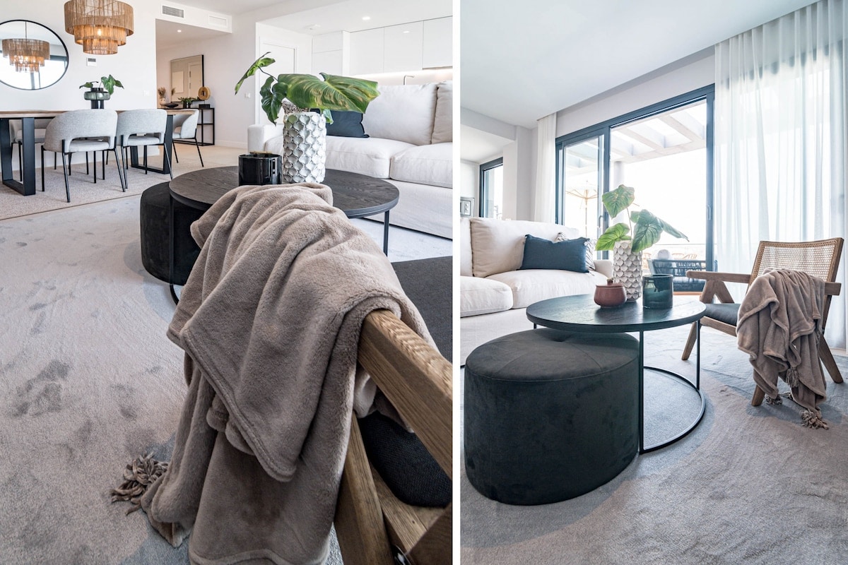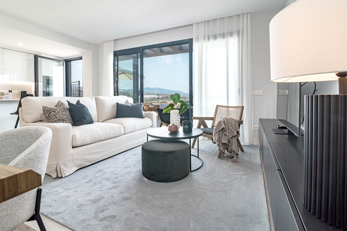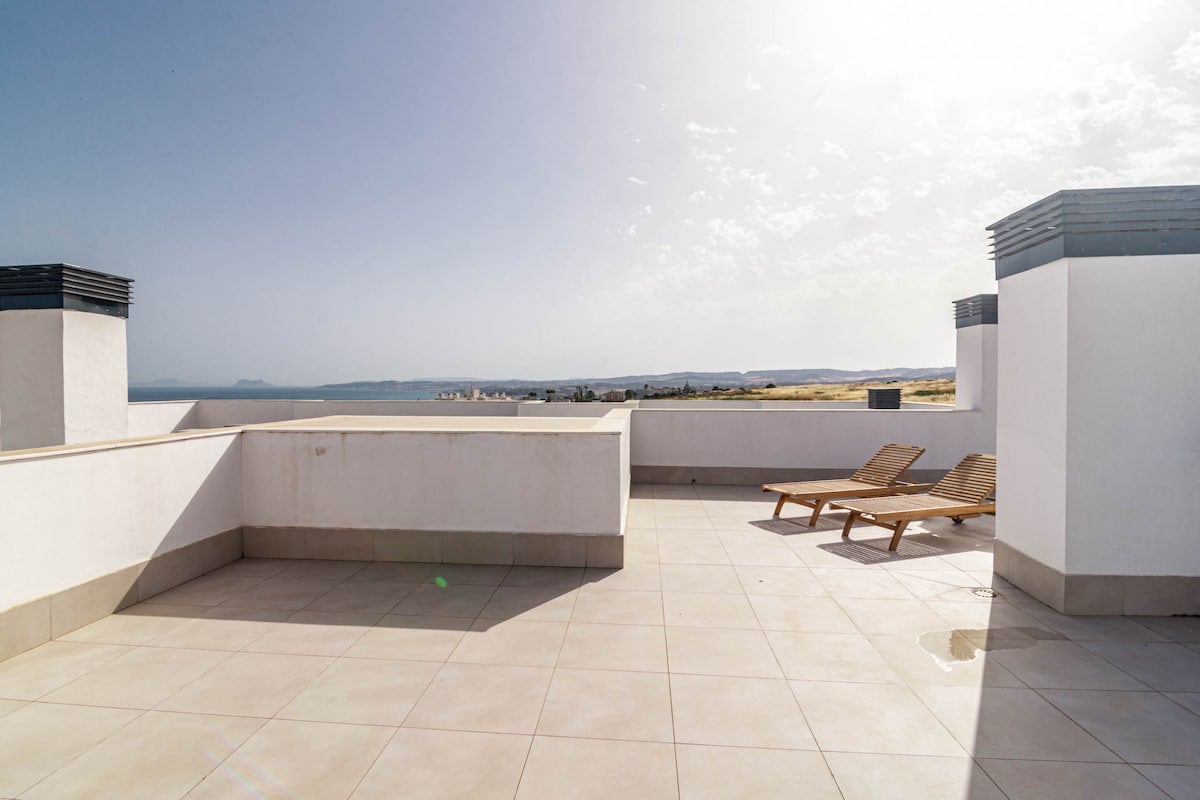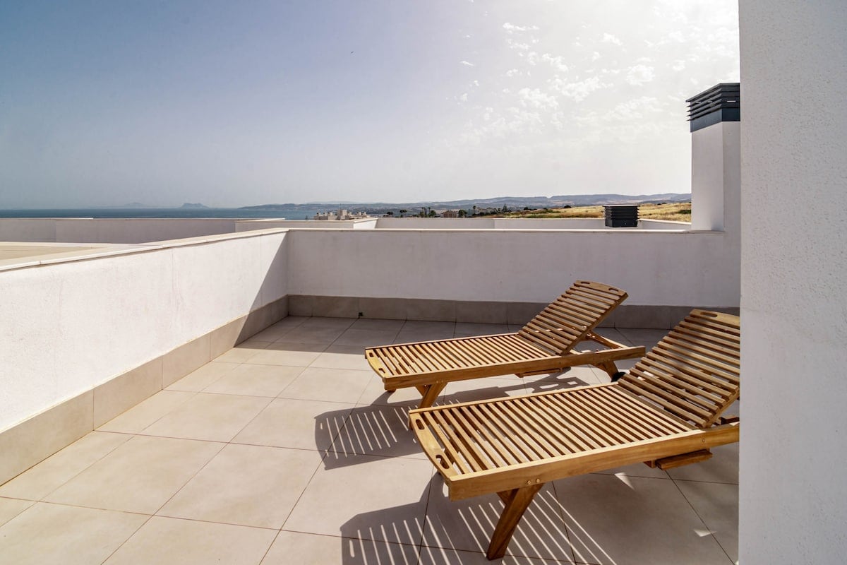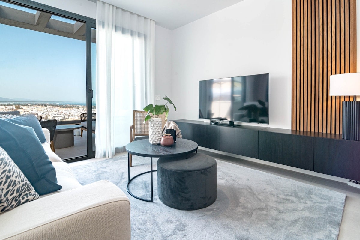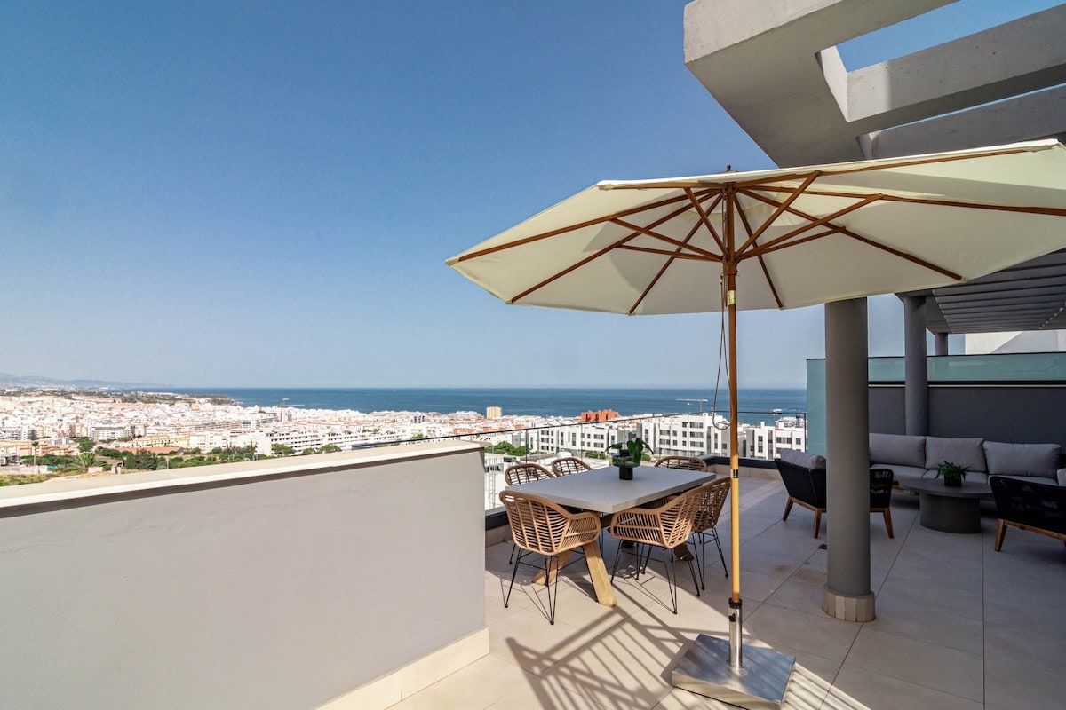 The outdoor pool is just outside your door and can be enjoyed all year long. The community of Mesas Homes also has a heated indoor pool and gym for you to use at your leisure (located in another building). The building is located in a new neighbourhood with gorgeous views of the town of Estepona, sea, and mountain views.