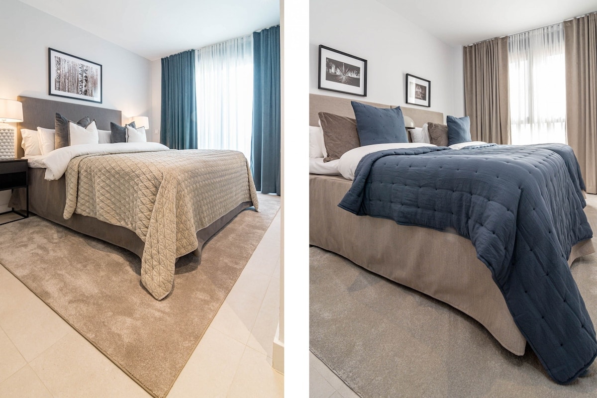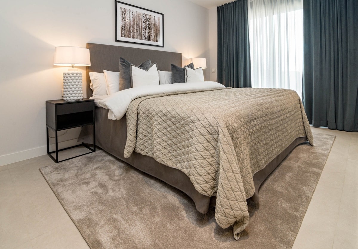 Located in a new luxury community in the neighbourhood of Las Mesas, this apartment is perfect for families and mature couples. A 2-bedroom, 2-bathroom modern open floor plan apartment has been tastefully furnished to anticipate all of your comforts inside and out.The master bedroom has a king-size bed that has been lavishly adorned with the softest of linens. The ensuite bathroom has a shower with a rainfall showerhead, a large sink, and is stocked with soap and a hairdryer. The second bedroom has 2 twin beds that can easily be pushed together to form a larger bed.