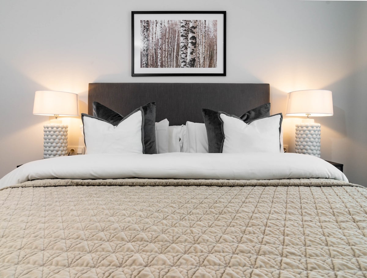 This apartment is perfect for families and mature couples. A 2-bedroom, 2-bathroom modern open floor plan apartment has been tastefully furnished to anticipate all of your comforts inside and out. The master bedroom has a king-size bed that has been lavishly adorned with the softest of linens.