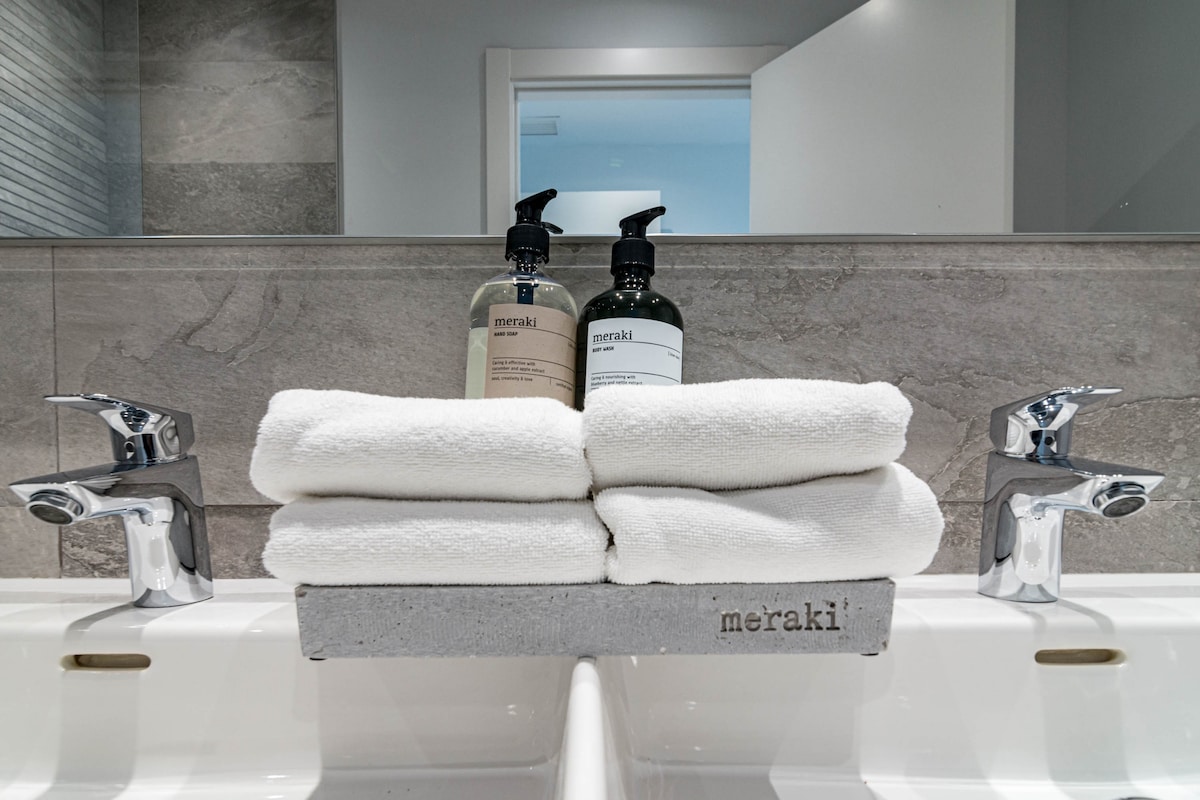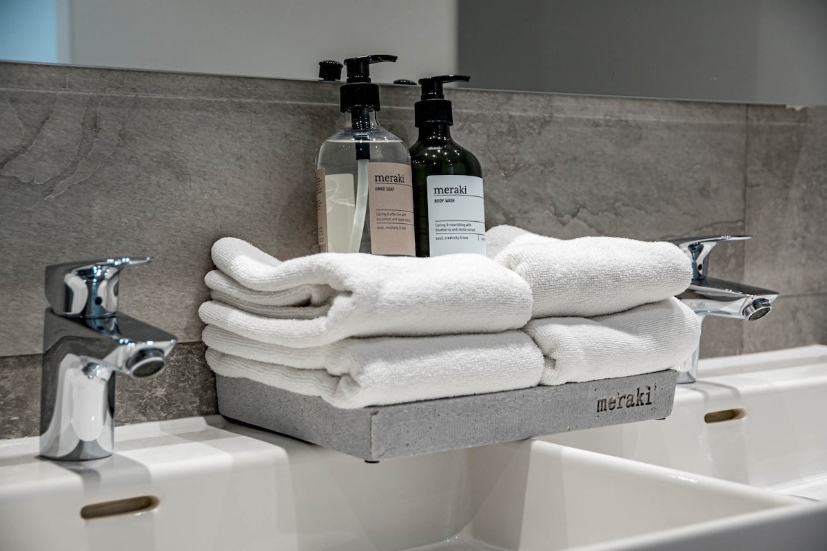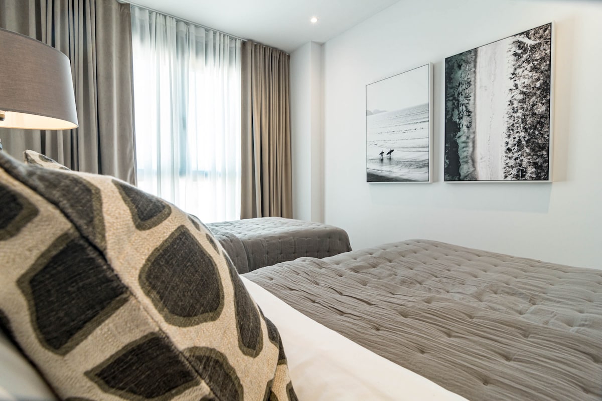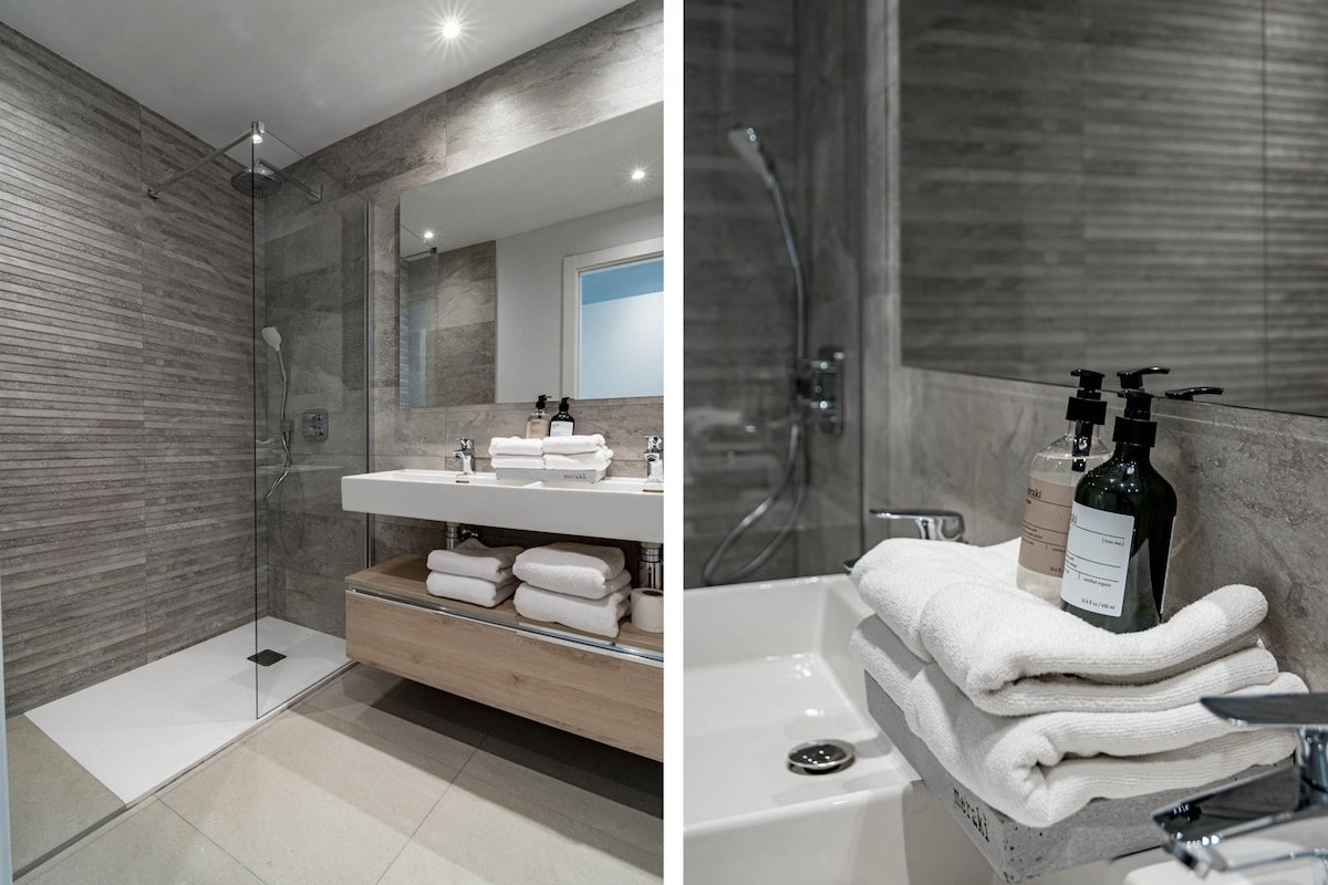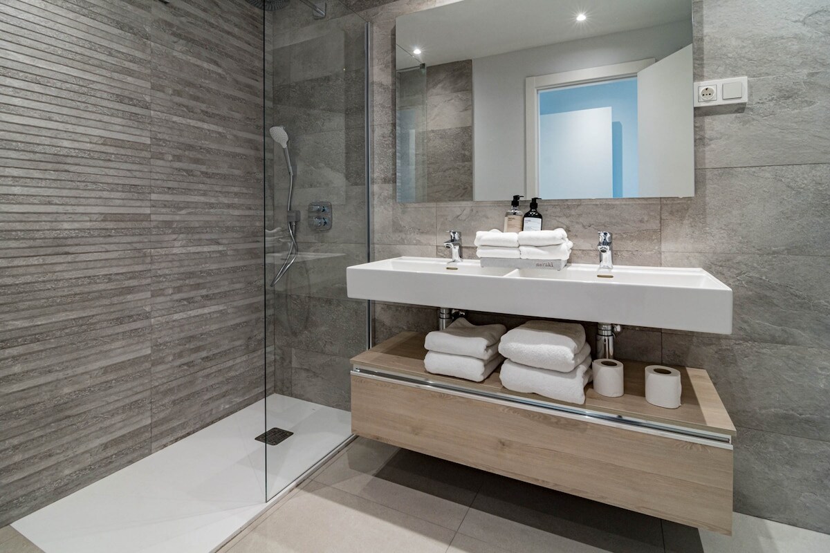 We were 2 families (8 people) staying in the apartment. We were very happy with the accommodation, it was clean and fresh. 4 bedrooms but only 2 toilets with shower so desirable with 1 more shower when we were so many people. In bathroom with only toilet which is good. Fresh and good kitchen/sofa and dining table where we could hang out. Relatively large terrace where we could easily fit all 8. Also space for sofa and armchairs where it was nice to sit in em. 1 parking space in the garage but it was easy to park car no. 2 just outside. It took about 12-15 minutes to walk down to the harbor but it was hilly so quite difficult to walk home. About 10 minutes walk to grocery stores (Lidl, Mercadona), Aptoket. A great place to stay where 2 families can easily stay and hang out together. Contact with RoomService great, key was picked up in key bin and a short video was sent with so you could see how to get to the home and garage. We can absolutely recommend this home.