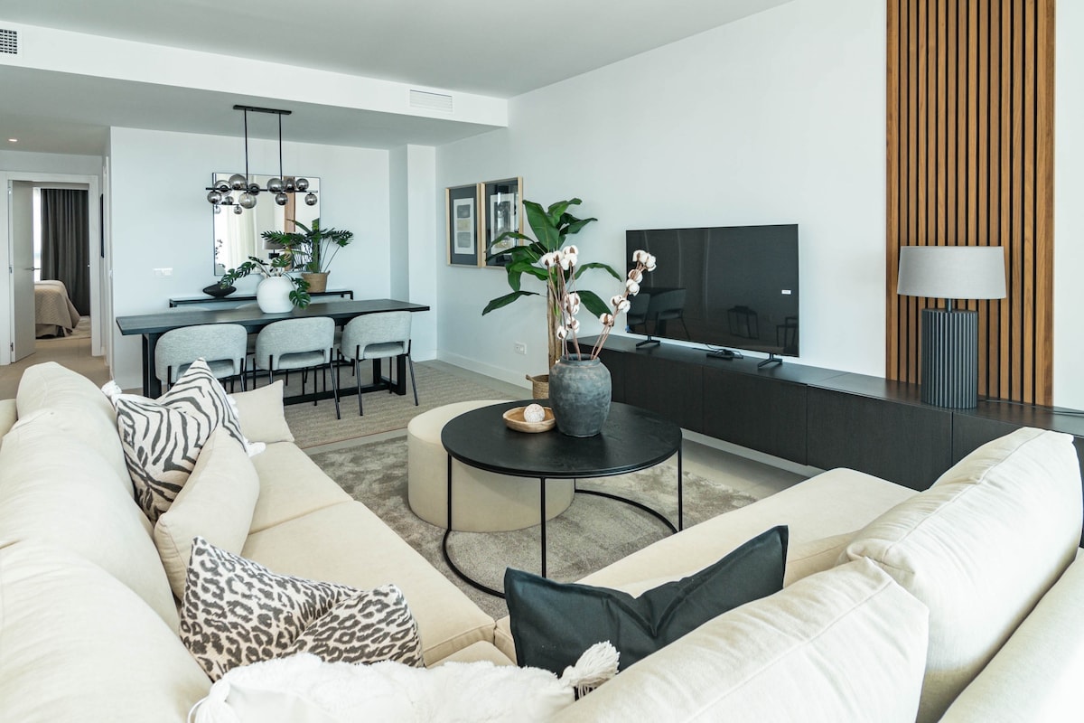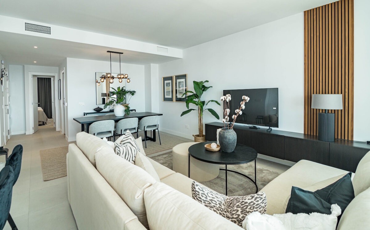 The apartment in Estepona has 4 bedrooms and has capacity for 8 people.The apartment is tastefully furnished, is ample, and is 108 m². It has views of the waterfront and the mountain.