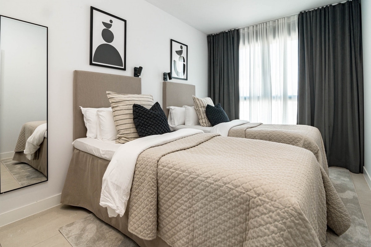 Lovely apartment, quite a few ‘handyman’ issues that need addressed like warped doors, shower trays, blocked sink in bathroom etc. expected for new build apartment, but still… No access to pool areas advertised as no access fob provided (for the days there was no pool ban due to water shortage). On requesting access fob, no solution provided which was disappointing. Other than above, we had a lovely stay in a lovely apartment, well located to enjoy the best of what Estepona has to offer.