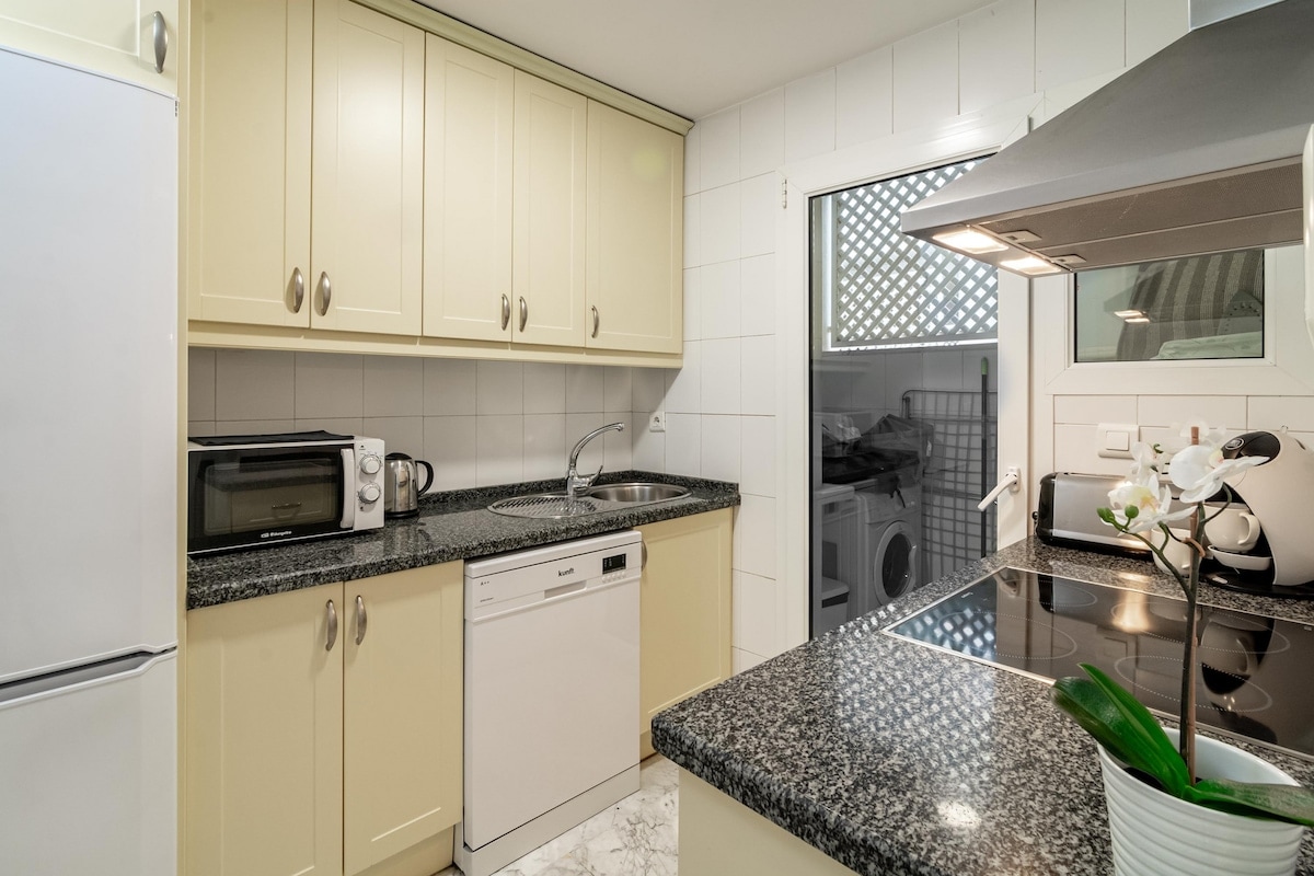 The property is located 50 m from Playa Puerto Banus sand beach, 200 m from the from the restaurant, 300 m from El Corte Ingles supermarket, 300 m from Puerto Banus city, 3 km from Ocean club Marbella thermal springs, 4 km from Aloha golf club golf course, 8 km from Marbella city.The house is situated in a well connected neighborhood next to the sea.