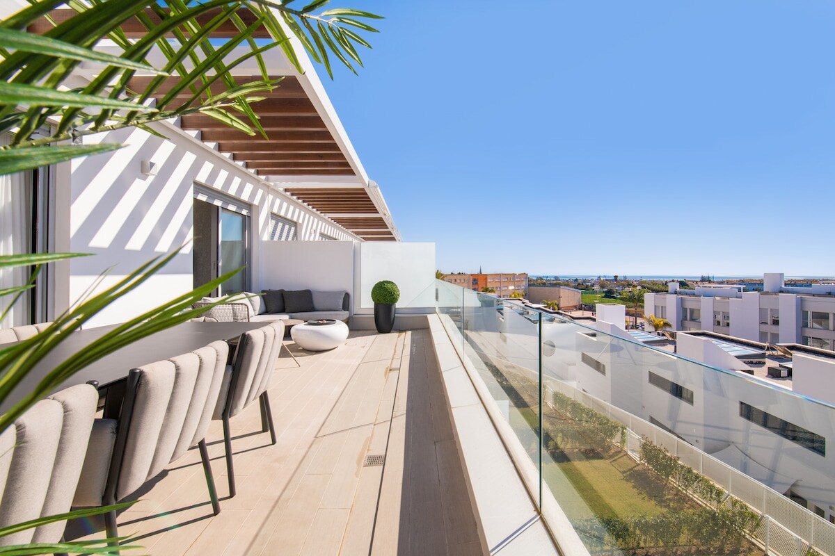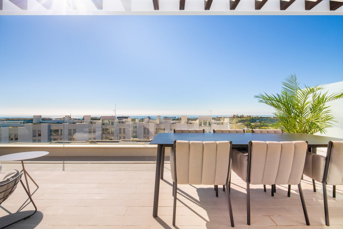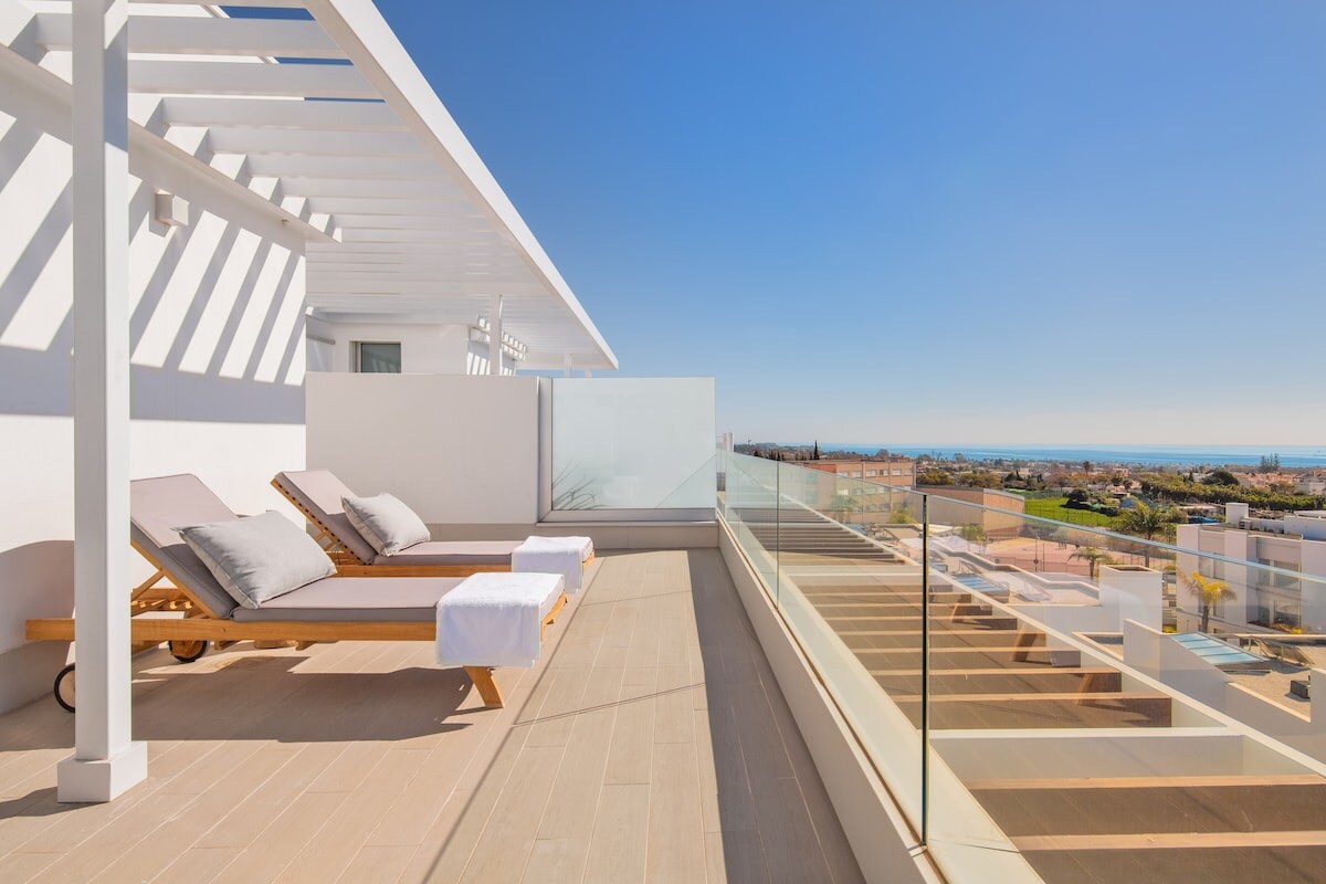 The penthouse is located 2 km away from Villa Cana sand beach, 4 km away from Los Flamingos golf course, 5 km away from Selwo Aventura theme park, and 6 km away from El Paraiso golf course. The location is a family-friendly neighborhood in a suburb.