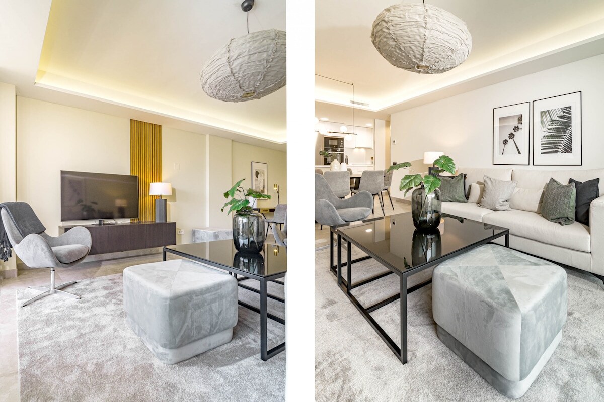 The apartment is tastefully-furnished, is ample, and is 121 m².