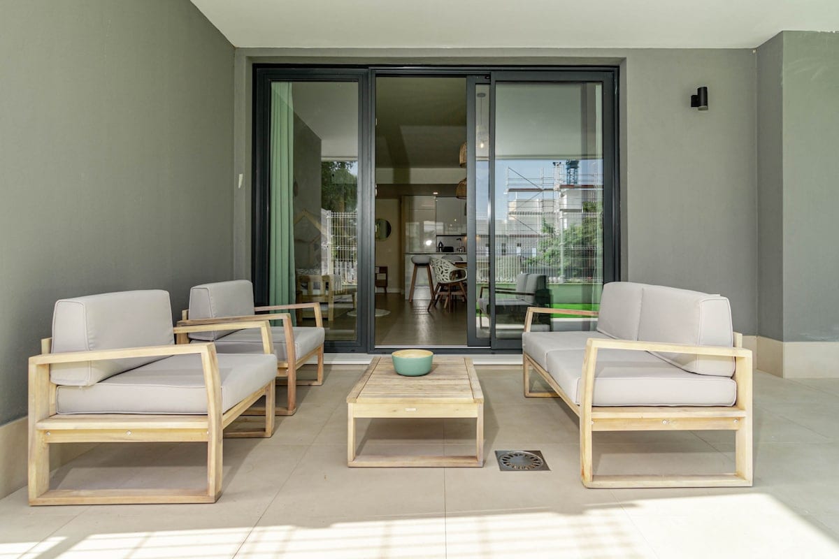 The property is located 300 m from Estepona city, 300 m from Carrefour supermarket, 500 m from the restaurant, 800 m from Playa Estepona sand beach, and 5 km from Vale Romano golf course. The house is situated in a children-friendly neighborhood in a suburb.