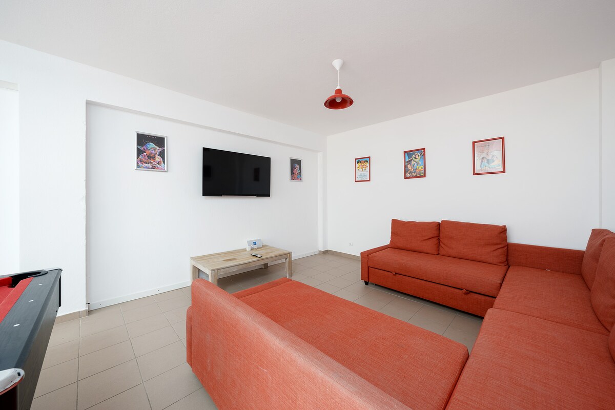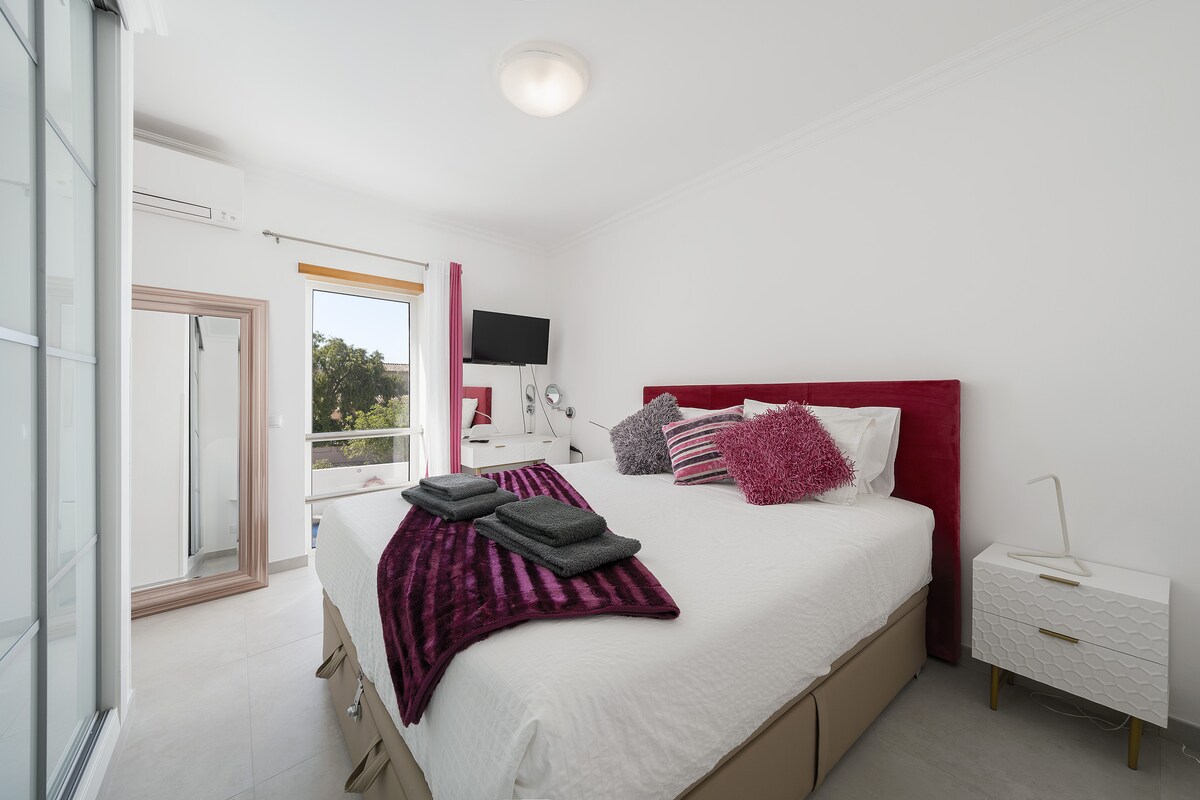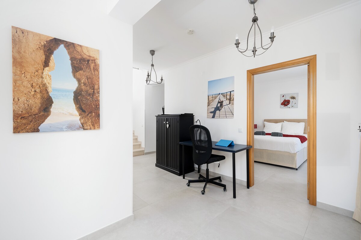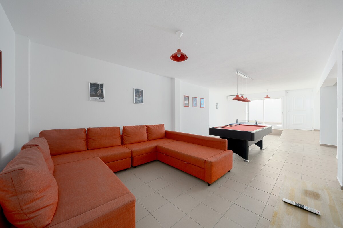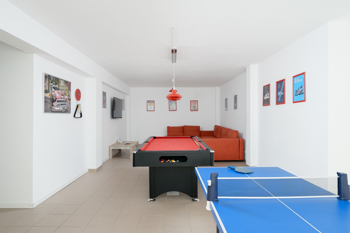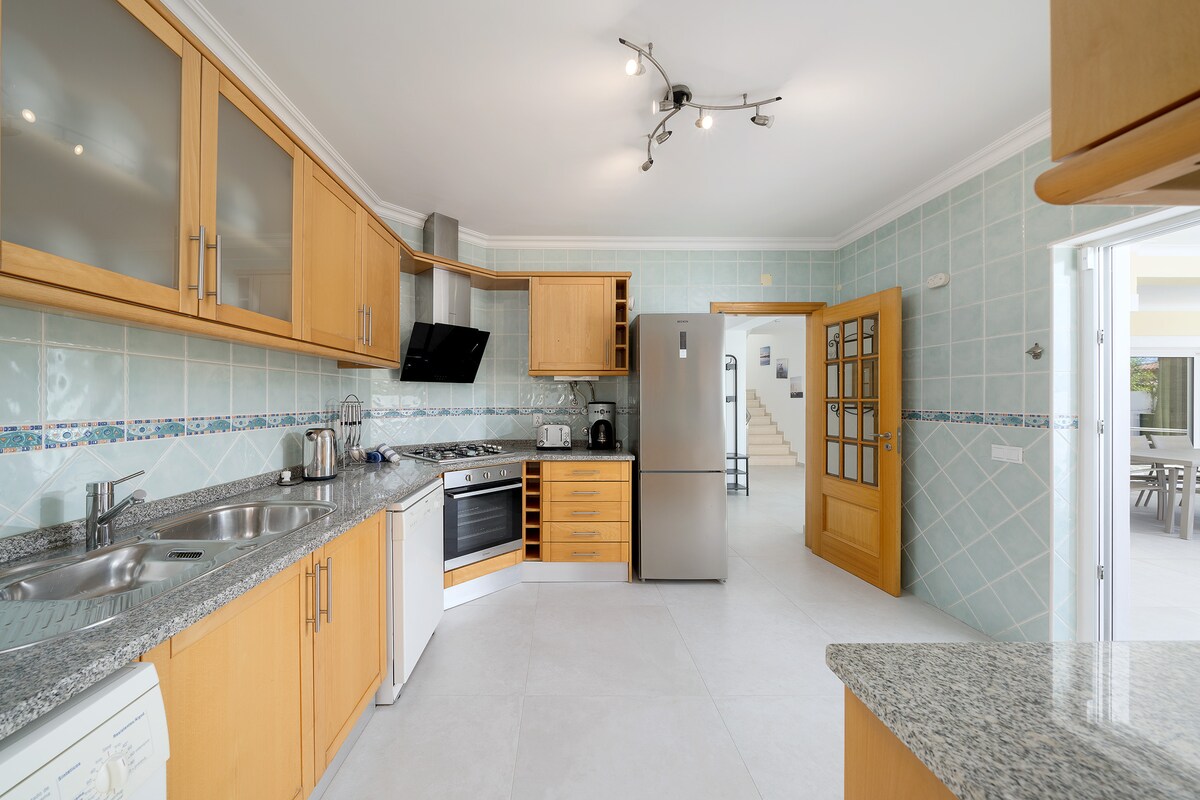 A modern spacious villa in a beautiful neighbourhood! Bigger than expected and the games room was amazing for the teenagers. A five minute walk down to gorgeous Porto de Mos beach and 20 mins into Lagos. You can also access the costal path and walk to all the best beaches around Lagos. Just perfect. And we were greeted by the loveliest couple who couldn't do enough for us. Great bbq, pool, huge living room w/big screen tv for nights when we wanted to chill. Would highly recommend.