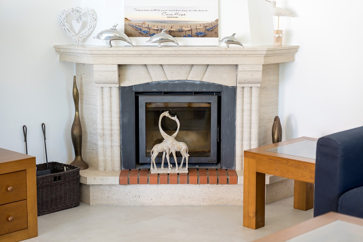 Other amenities include air conditioning throughout, a cosy living room with a fireplace, and a laptop-friendly workspace, ensuring comfort and convenience during your stay. The villa also benefits from parking, making it easy to explore the local area.