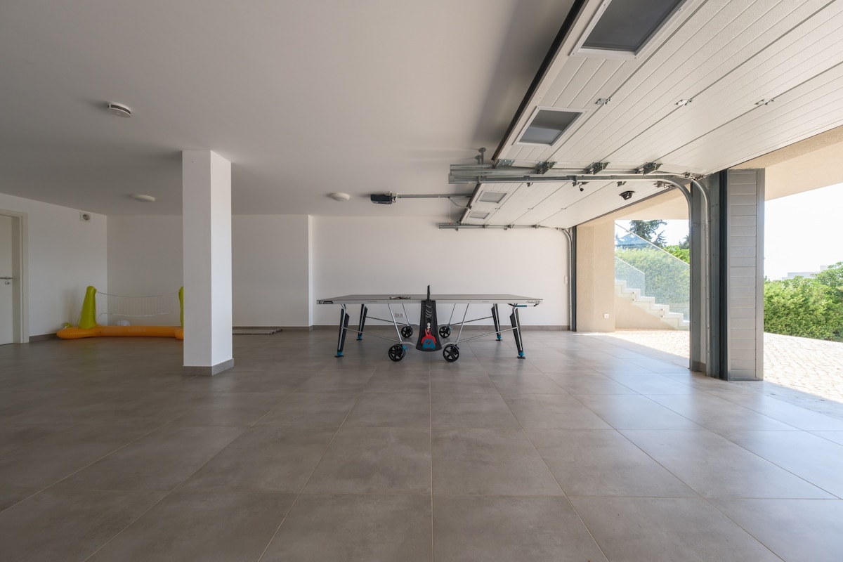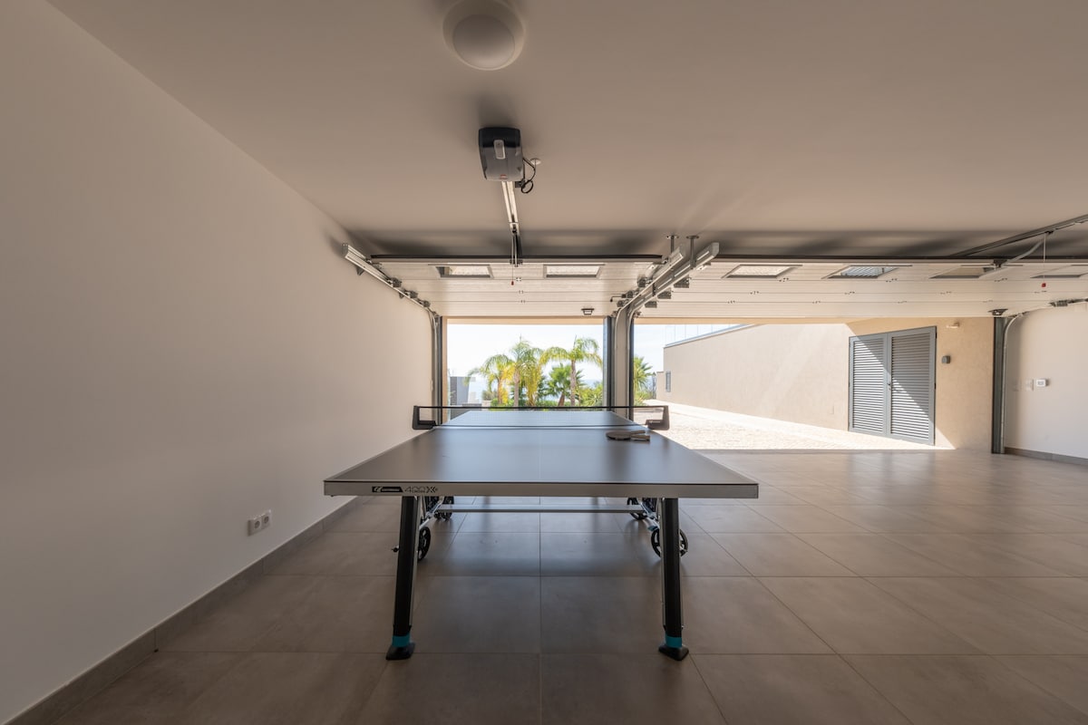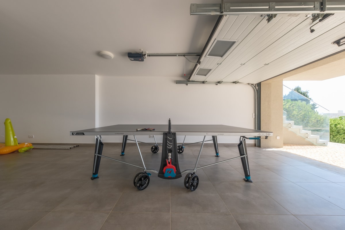 The villa boasts a range of family-friendly amenities, including a ping pong table. The private outdoor pool is perfect for cooling off on hot days, and the garden provides ample space for the kids to play.