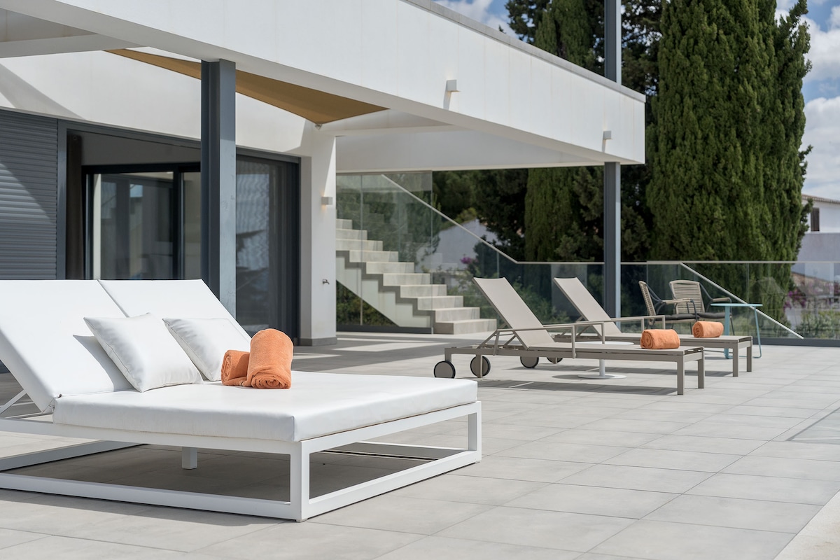 For your convenience, the villa has a private parking area with 4 covered spaces. Air conditioning throughout ensures a comfortable stay, no matter the weather. And with a fireplace, you can cosy up on chilly evenings.