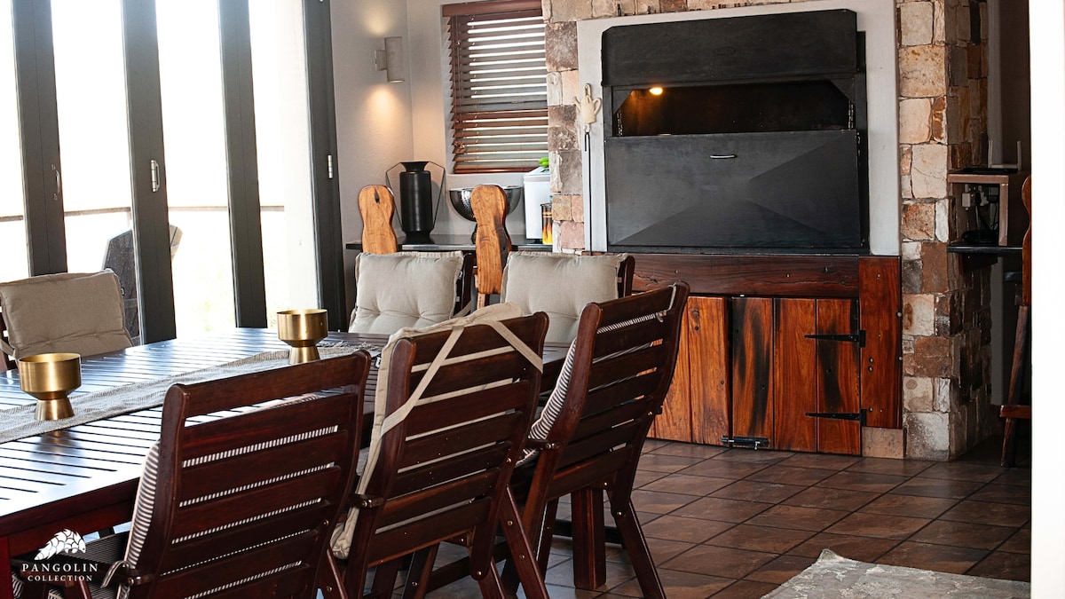 - Indoor fireplace & built-in braai w/ private BBQ grill