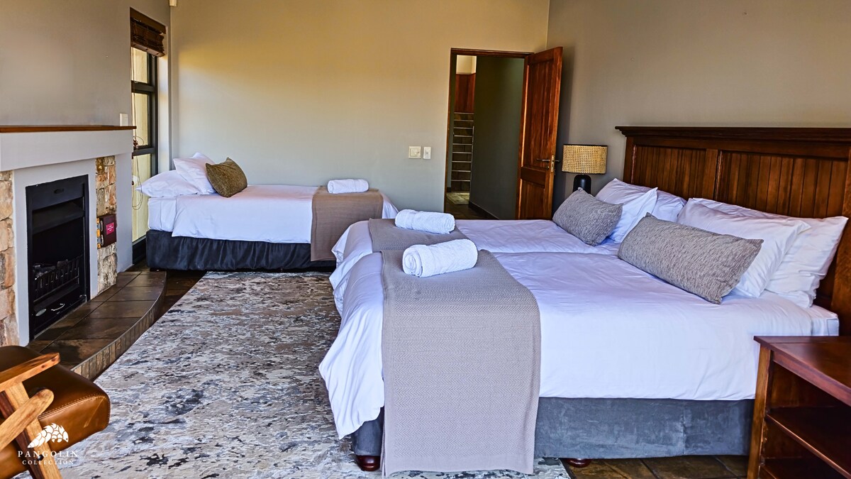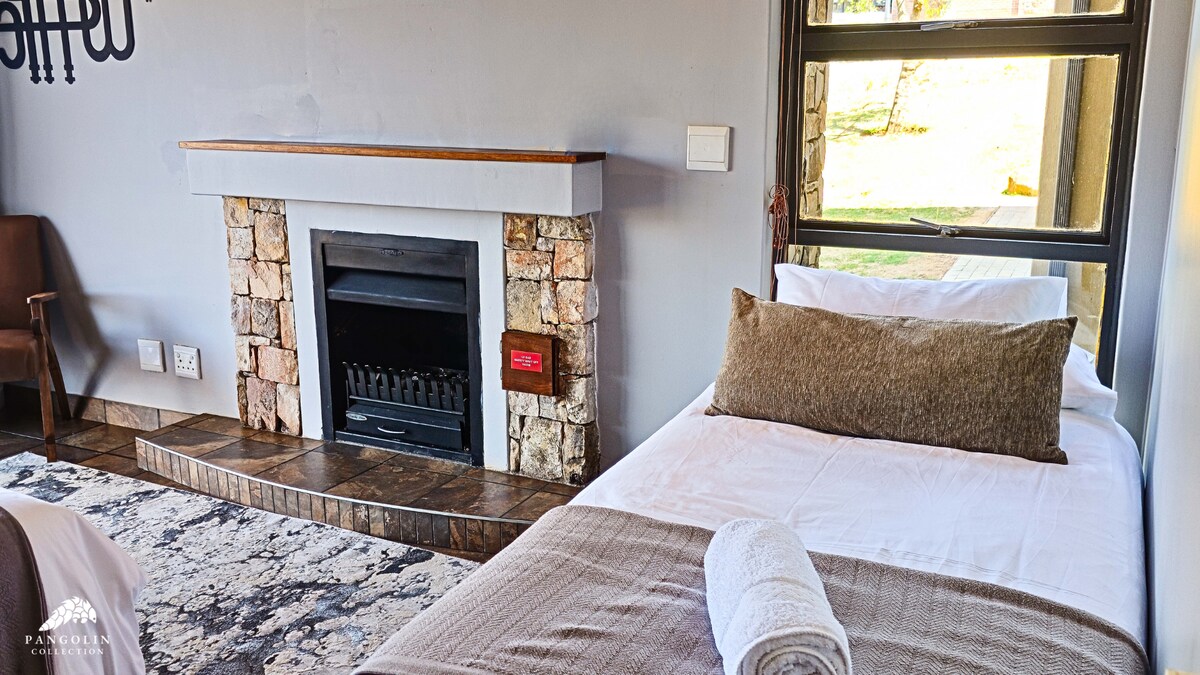 Morning light spills across rolling hills as you look out over the golf course and the distant peaks of the Steenkampsberg Mountain Range. From the patio, you can hear the soft breeze through the grasslands and feel the quiet rhythm of Highland Gate Golf and Trout Estate. Evenings bring the glow of an indoor fire or the smoky aroma of a braai shared with family and friends, creating a sense of ease in this peaceful setting.Sleeping arrangements