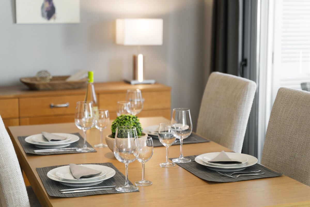 At the heart of the apartment is the open-plan kitchen and dining area, a space where culinary magic happens. Fully equipped with a fridge, freezer, oven, microwave, and dishwasher, you’ll have everything you need to prepare delicious meals together or indulge in leisurely breakfasts with your loved ones before setting off to explore the local area. The dining area provides a lovely setting for family meals or game nights, fostering connection and laughter.