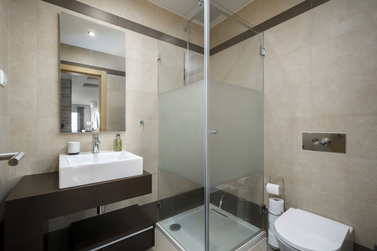 The apartment boasts two spacious bedrooms designed with comfort in mind. The master bedroom offers a luxurious king-size bed, providing a tranquil oasis for rest, while the second bedroom features a cozy queen-size bed, ensuring a restful night’s sleep for all. Both bedrooms come with ample storage space, making it easy to unpack and settle in during your stay. You'll also find two modern bathrooms, complete with showers and essentials like towels and a hairdryer, allowing everyone to refresh and recharge with ease.