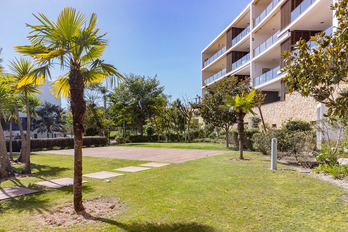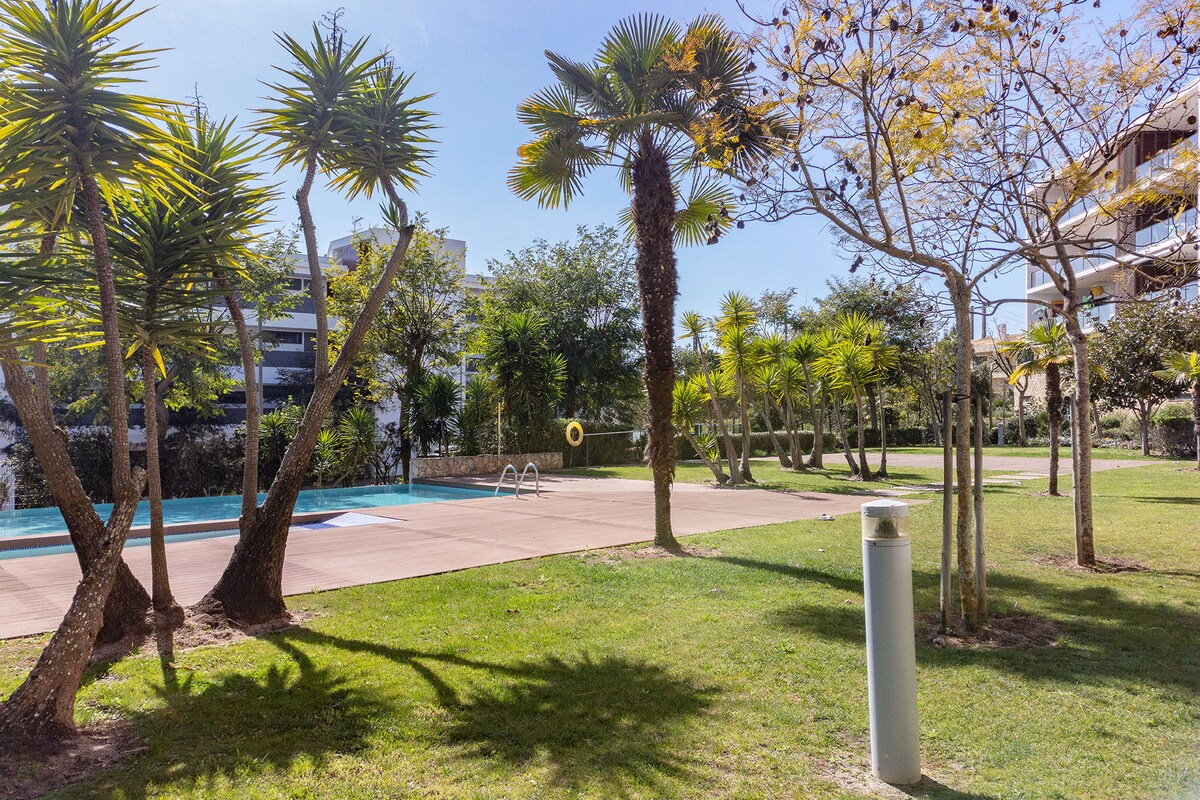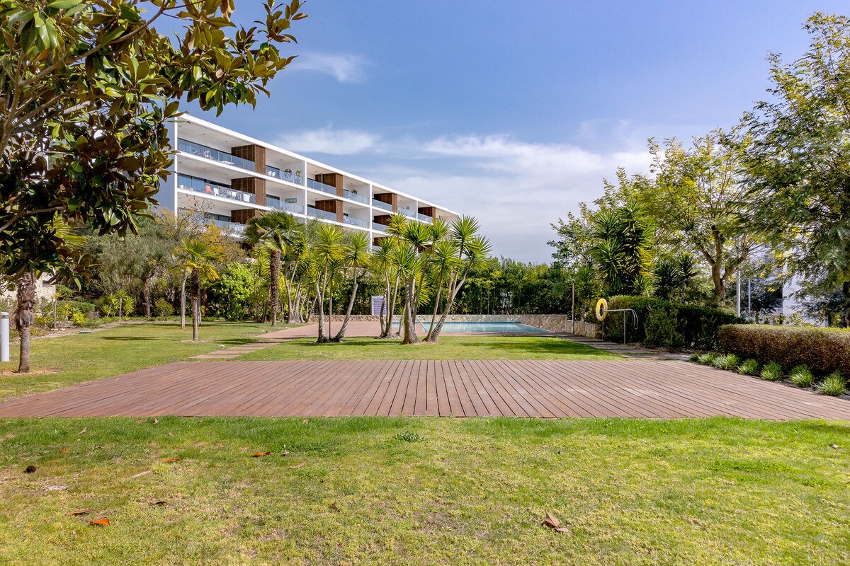Enjoy the shared outdoor pool and the beautifully landscaped garden, where you can relax on the sun loungers. The apartment's central heating and air conditioning ensure your comfort throughout the year.