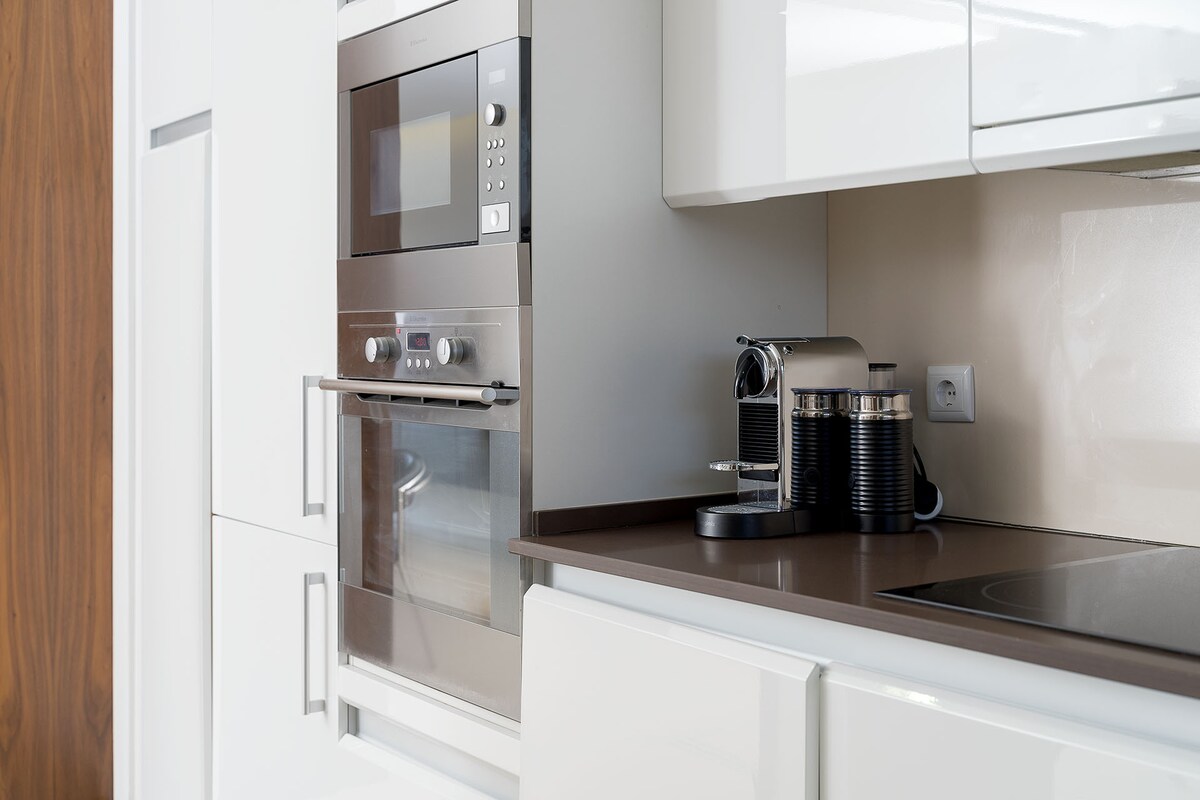 The apartment boasts two spacious bedrooms, each with a comfortable double bed, ensuring a restful night's sleep for all. The two bathrooms, one with a shower and the other with a bathtub, cater to your every need.