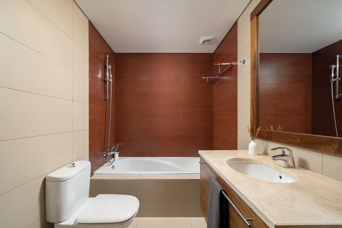 This modern and comfortable apartment offers the perfect getaway for couples, friends, and families alike. With its prime location, you'll be just a stone's throw away from the stunning Meia Praia and Praia da Patata beaches, as well as the charming Lagos town centre.The apartment boasts two spacious bedrooms, each with a comfortable double bed, ensuring a restful night's sleep for all. The two bathrooms, one with a shower and the other with a bathtub, cater to your every need. The open-plan living and dining area provide a cosy and inviting space to gather with your loved ones, whether you're enjoying a home-cooked meal or simply relaxing on the plush sofa.