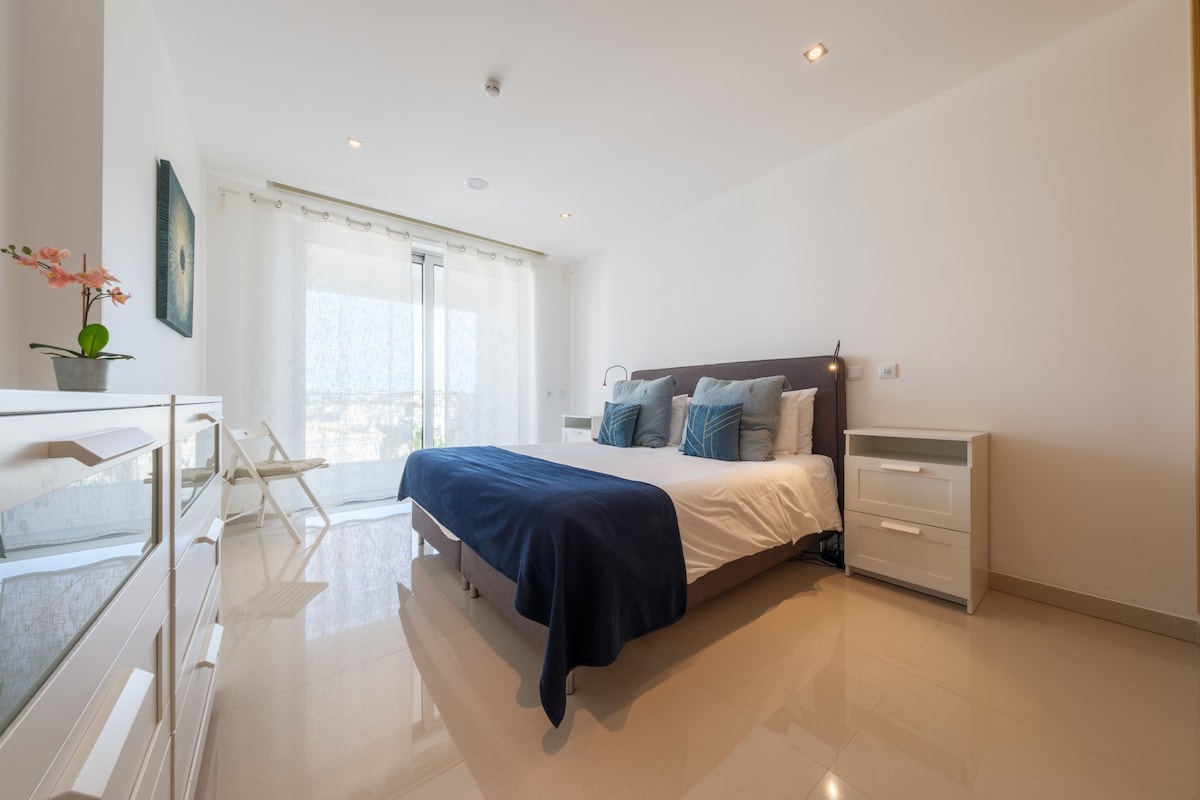 The apartment boasts 2 spacious bedrooms, each with a luxurious king-size bed, ensuring a comfortable and restful stay for all.