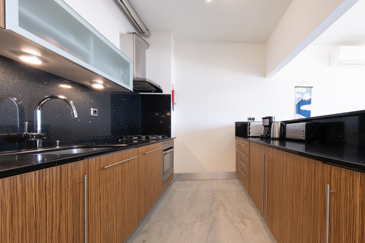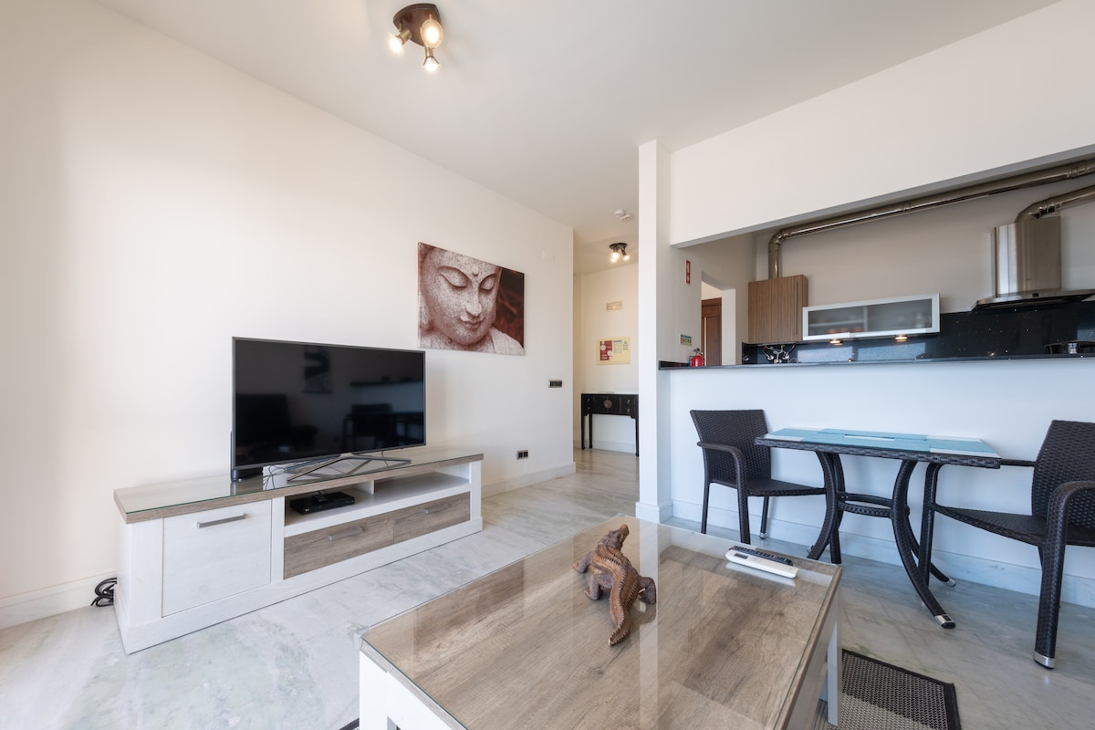Throughout the apartment, you'll find thoughtful touches that cater to your needs, such as a laptop-friendly workspace, a flat-screen Tv, and a selection of home accessories like wine glasses and a clothes drying rack.