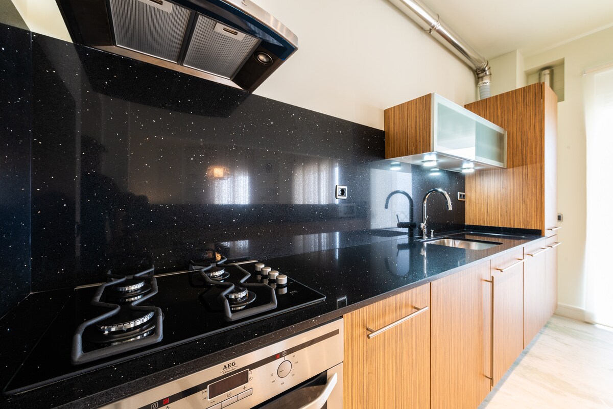 The apartment features two well-appointed bedrooms, each with ample storage space and comfortable beds, ensuring a restful night's sleep. The two modern bathrooms, one with a bathtub, cater to your every need.