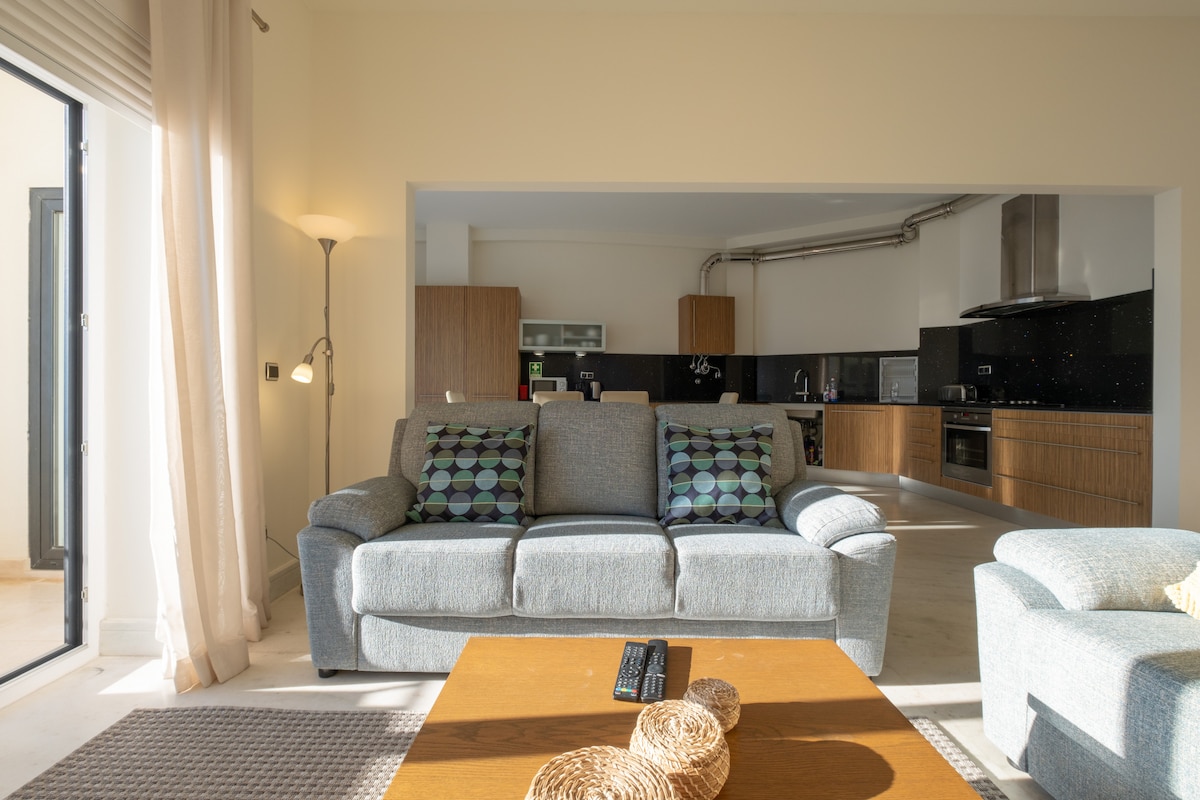 This modern and comfortable apartment is located right next to the sea, making it an ideal choice for families and couples looking to enjoy the beautiful beaches of Lagos. With 2 bedrooms and 2 bathrooms, the apartment can comfortably accommodate up to 4 guests.The bedrooms feature a king-size bed and 2 single beds, providing ample sleeping space. The apartment also boasts a private living room and a fully equipped kitchen, complete with a fridge, freezer, oven, microwave, and dishwasher, allowing you to prepare meals at your convenience.