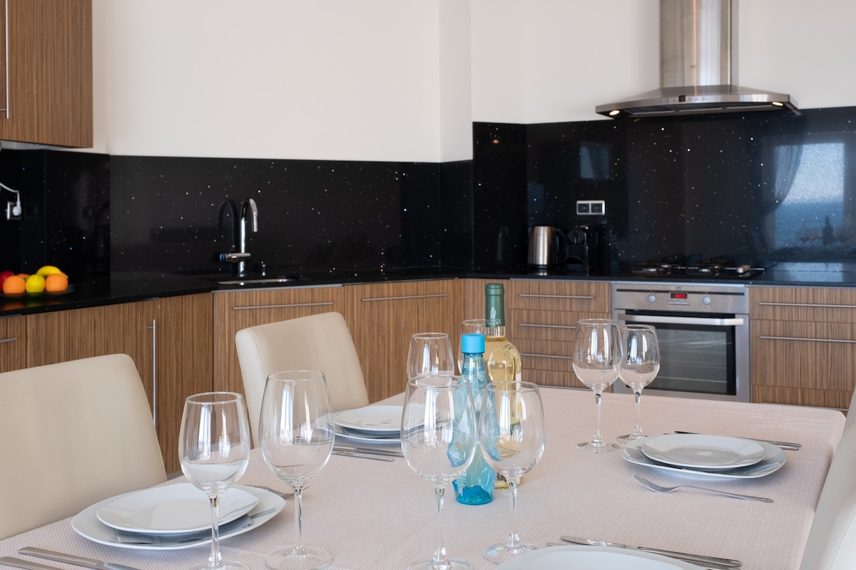For your comfort, the apartment is equipped with air conditioning, ensuring a pleasant temperature throughout your stay. The private balcony offers stunning sea views, providing the perfect spot to enjoy your morning coffee or an evening glass of wine.