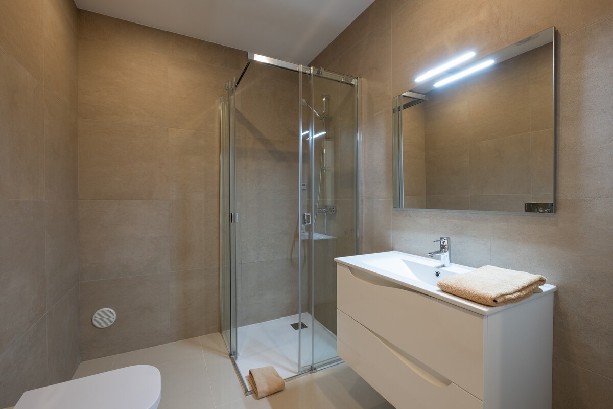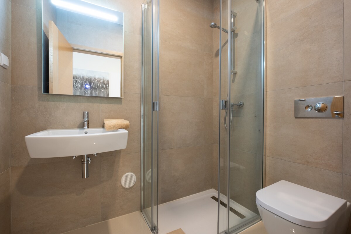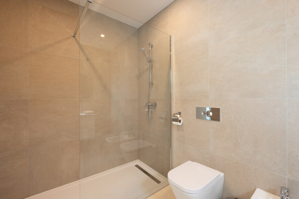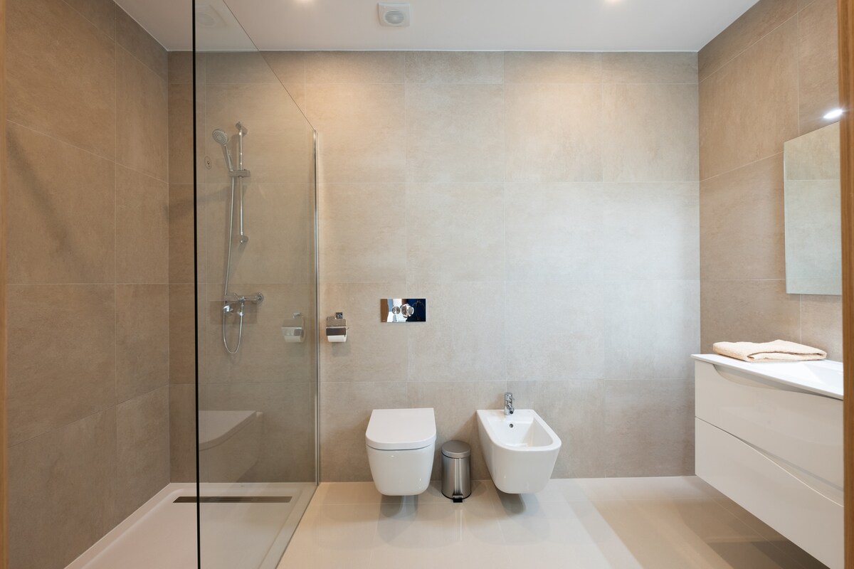 The apartment features 3 spacious bedrooms, including a luxurious king-size master suite. With a total of 5 beds, it can comfortably sleep up to 6 guests. The 3 bathrooms, all with showers, ensure everyone has their own private space to get ready.