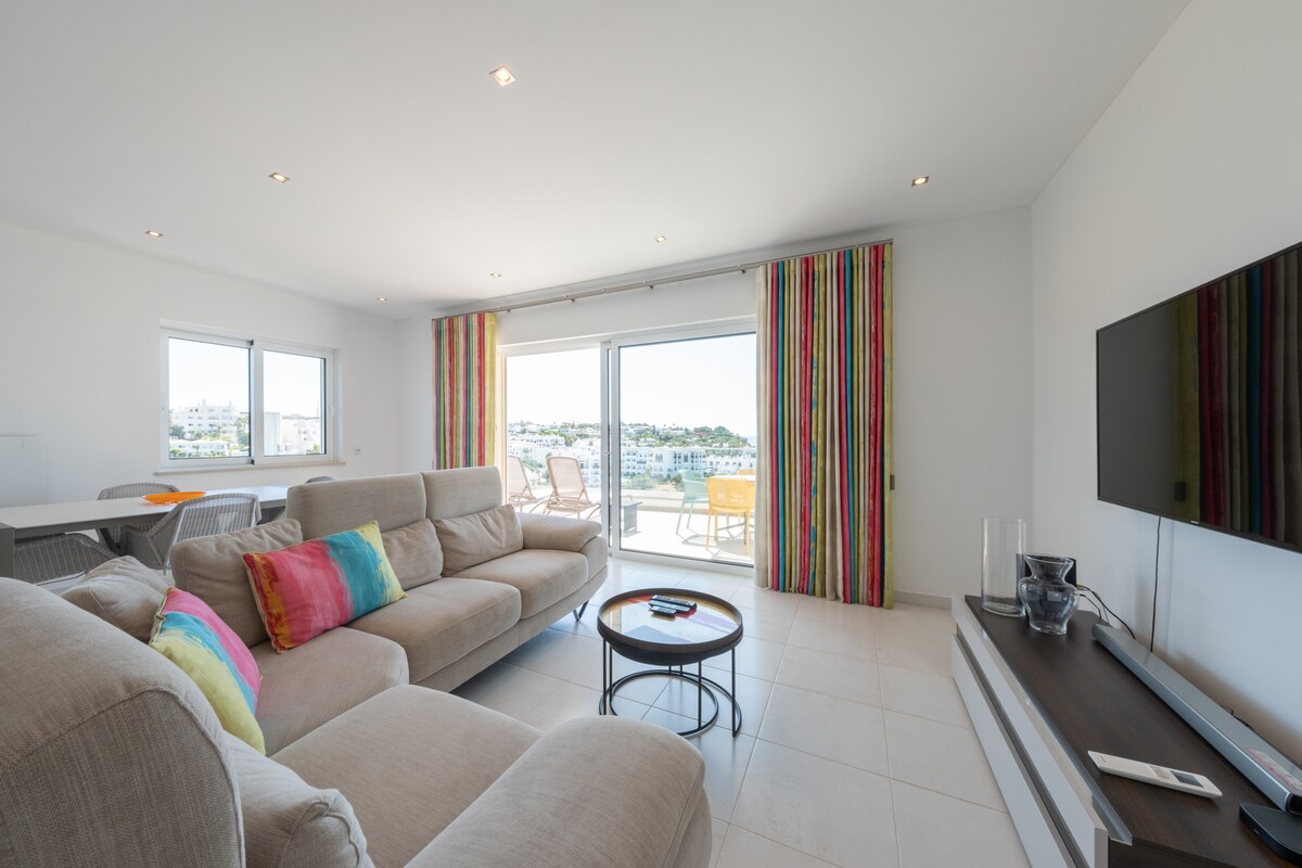 The location of the apartment is ideal, with easy access to a variety of amenities. The nearest beach, Porto de Mós, is just a short 335-meter walk away, while the town of Lagos, with its charming historic center, is only 2 kilometers away. Golfers will appreciate the proximity to several golf courses, including Boavista Golf & Spa Resort and Espiche Golf, both within a 15-minute drive.