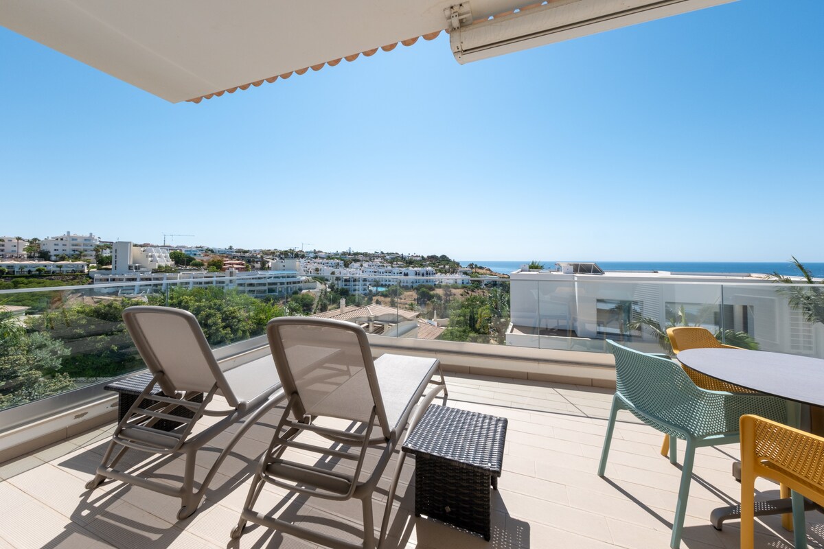 The apartment also boasts a balcony, where you can enjoy the refreshing sea views and outdoor dining, surrounded by the lush greenery of the residential complex.