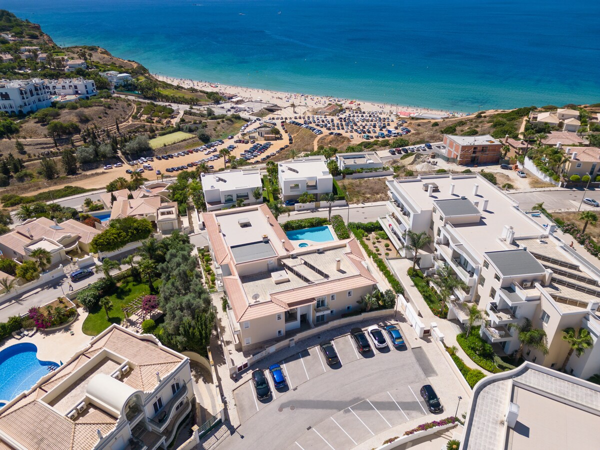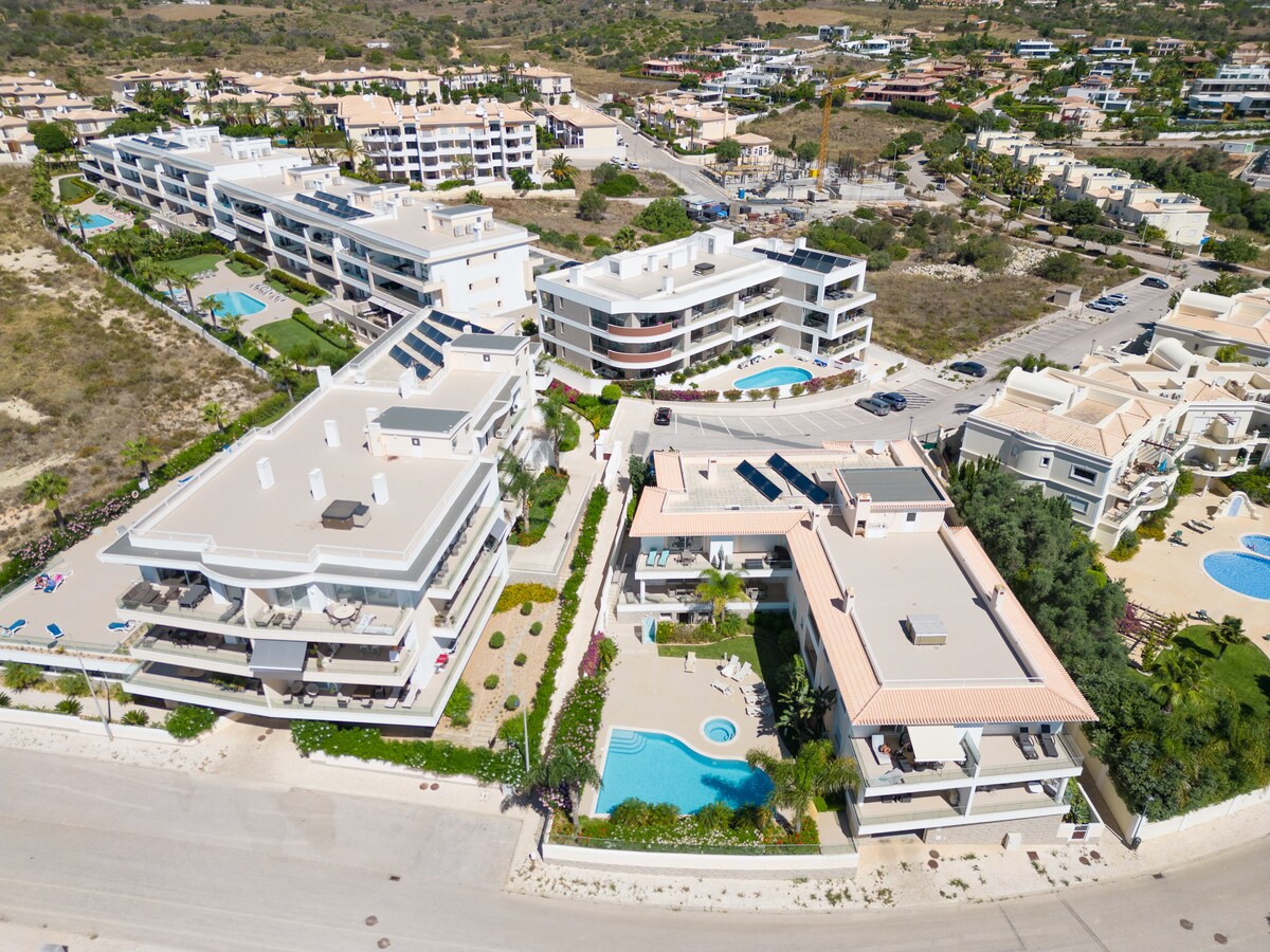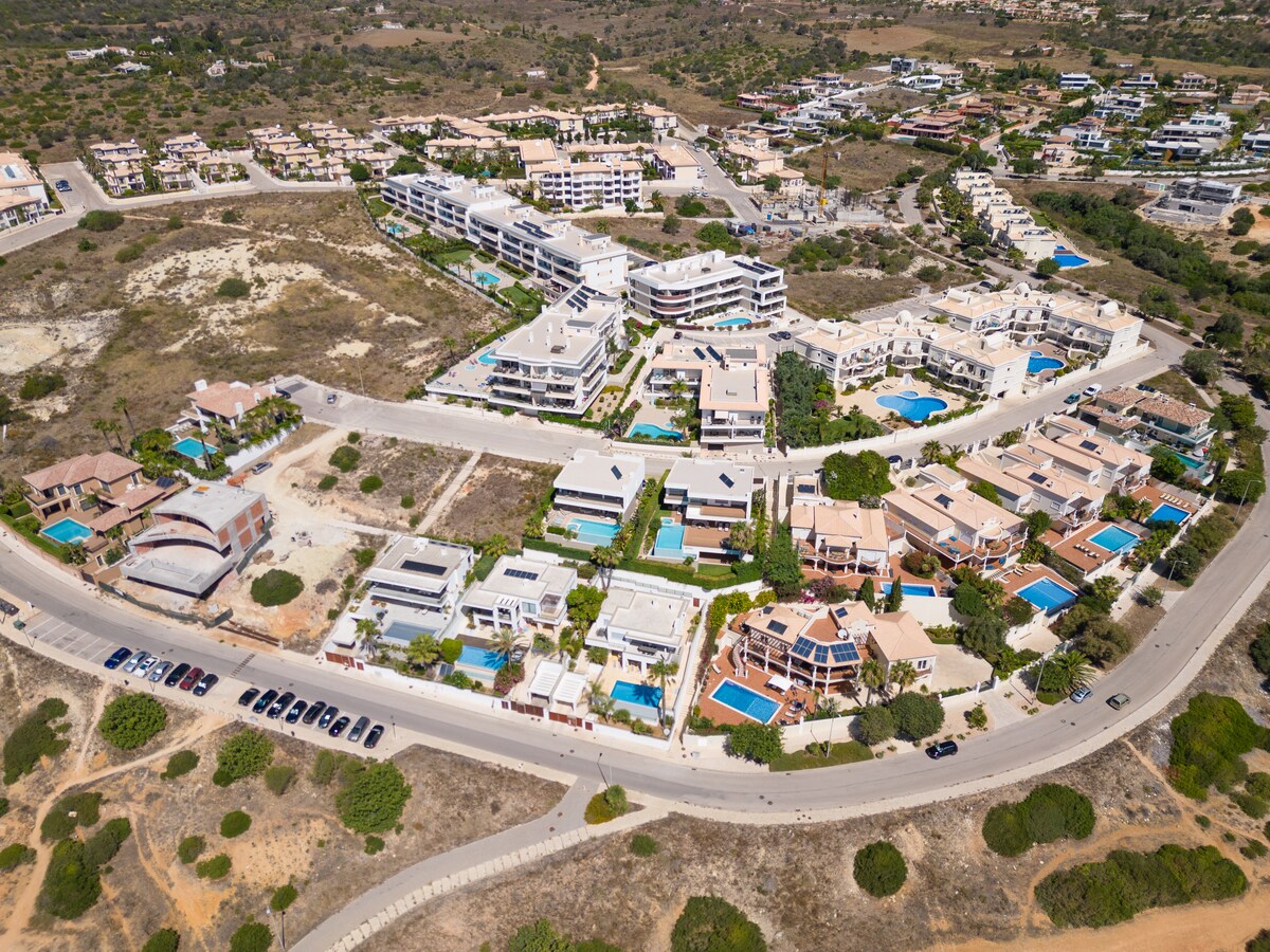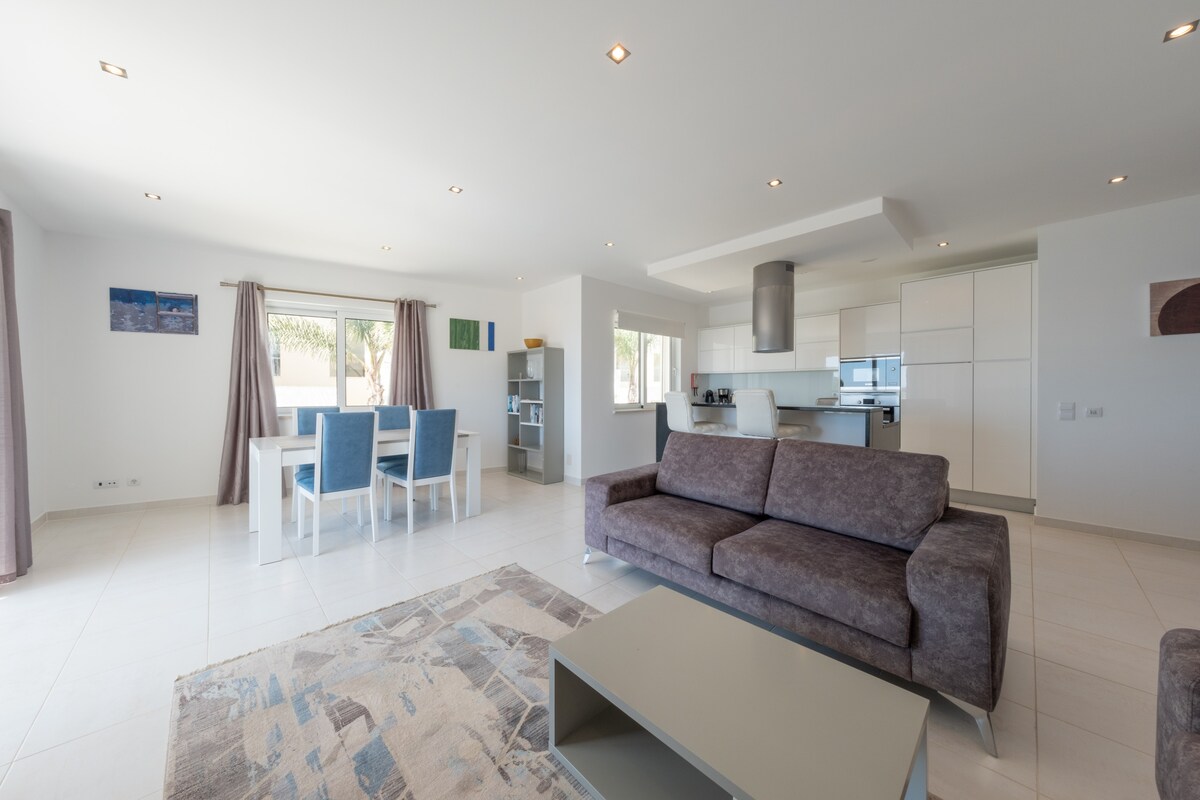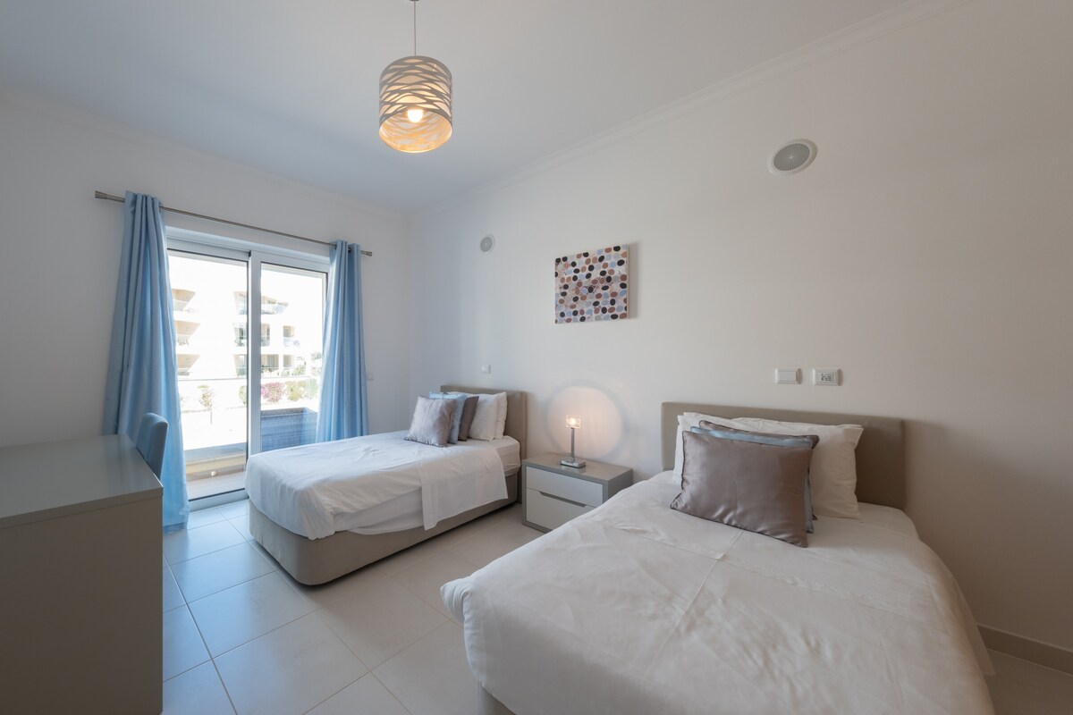 This modern and tastefully furnished apartment is located in a residential complex, making it an ideal choice for families. With its prime location, you'll be just a short distance from the beautiful Porto de Mós beach, as well as various golf courses, supermarkets, and other local attractions.The apartment features 2 bedrooms and 2 bathrooms, accommodating up to 4 guests comfortably. The bedrooms are equipped with a double bed and 2 single beds, ensuring a good night's sleep for everyone. The bathrooms include a shower and a bathtub, providing ample space for your daily routine.