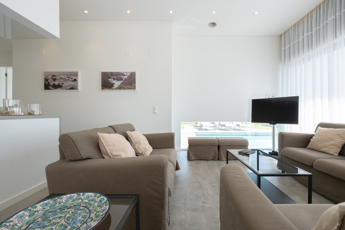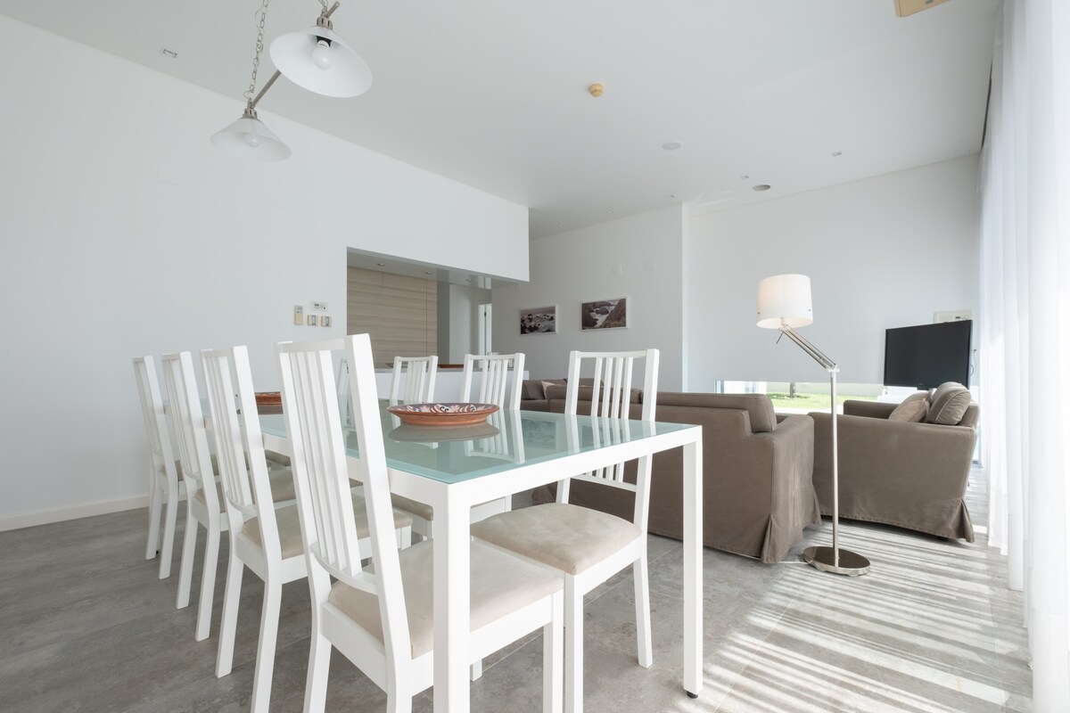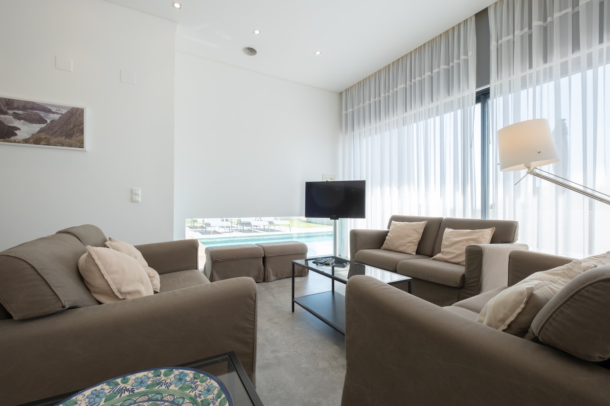 We (4 adults, 1 toddler and 1 baby) enjoyed our stay very much. We got a warm welcome and a nice house tour. The host was always reachable via WhatsApp. The house was very clean, stocked with lots of kitchen utensils, Tennis racks and much more. The pool was lovely and the tennis court a nice add on. We can highly recommend staying at that villa. Grocery shops close by, can’t say that much about the town due to staying there off season.