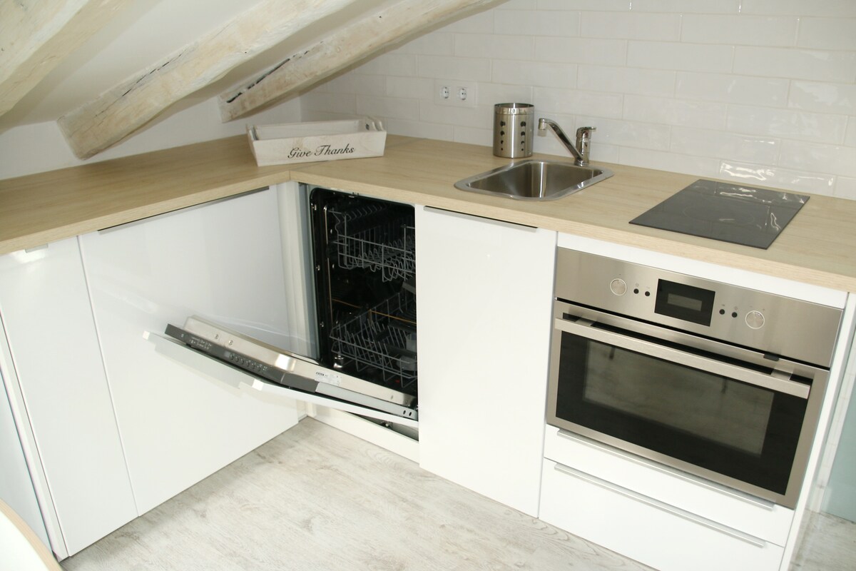 The bathroom was leaking, there were strange hairs everywhere, especially in the bed, the dishes were not very clean and the kitchen was difficult to use because of the low sloping ceiling, the sofa and the pillows on it were also dirty. None of this was visible in the photos, and the price was also unexpected.