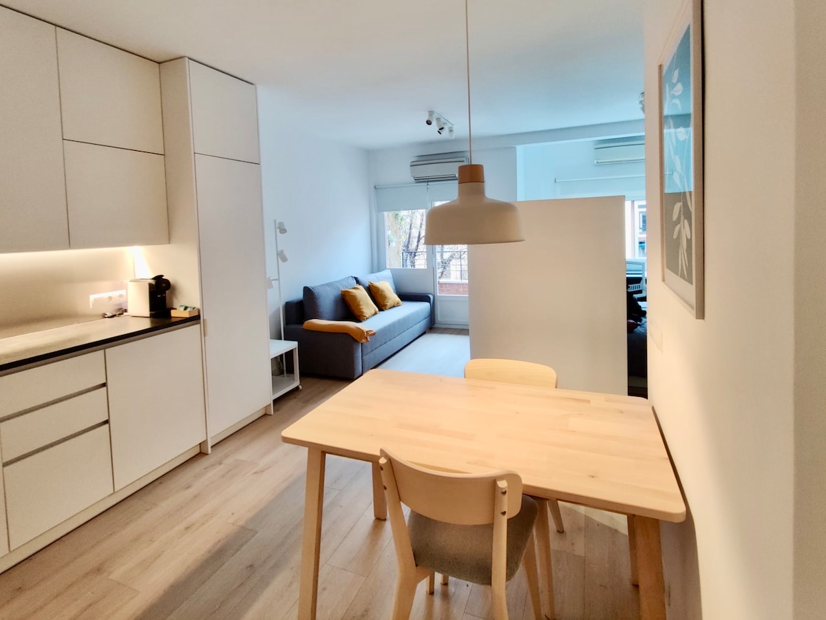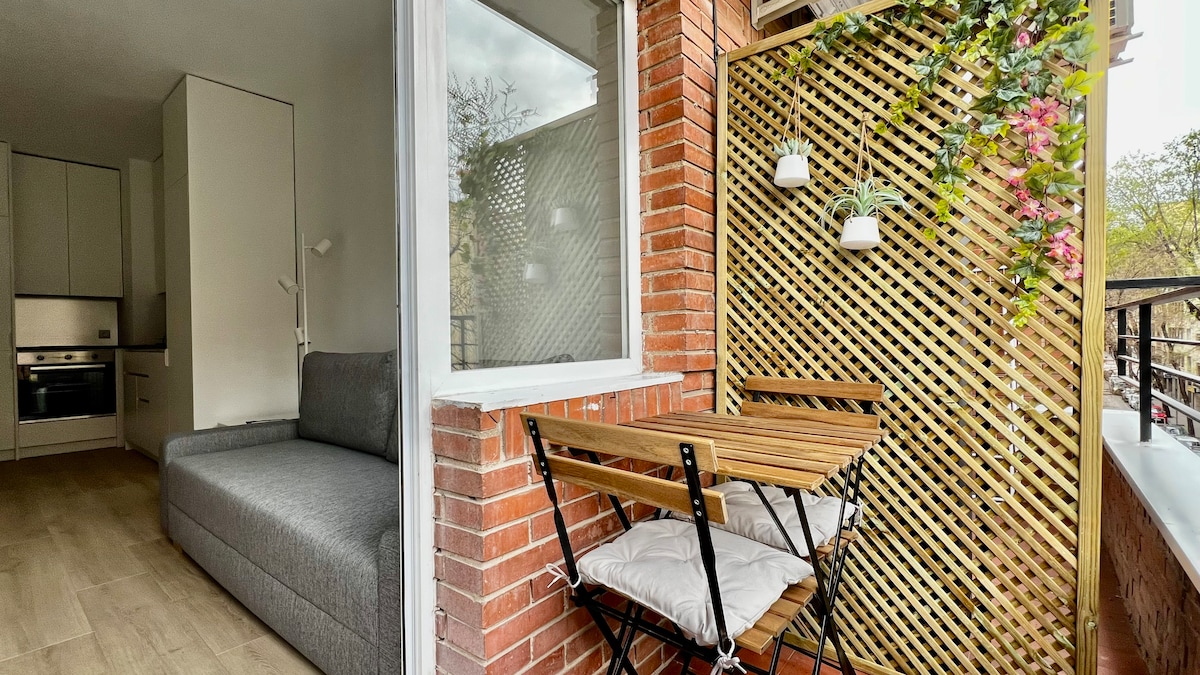 Just like the photos! Nice and clean, not big, but there is a lot of storage so I recommend it for a longer period of time. It's very easy to get everywhere by metro. The kitchen is also perfectly equipped. The neighborhood is quieter, but there is never silence in Madrid. The mesh part cannot be completely light-blocking.