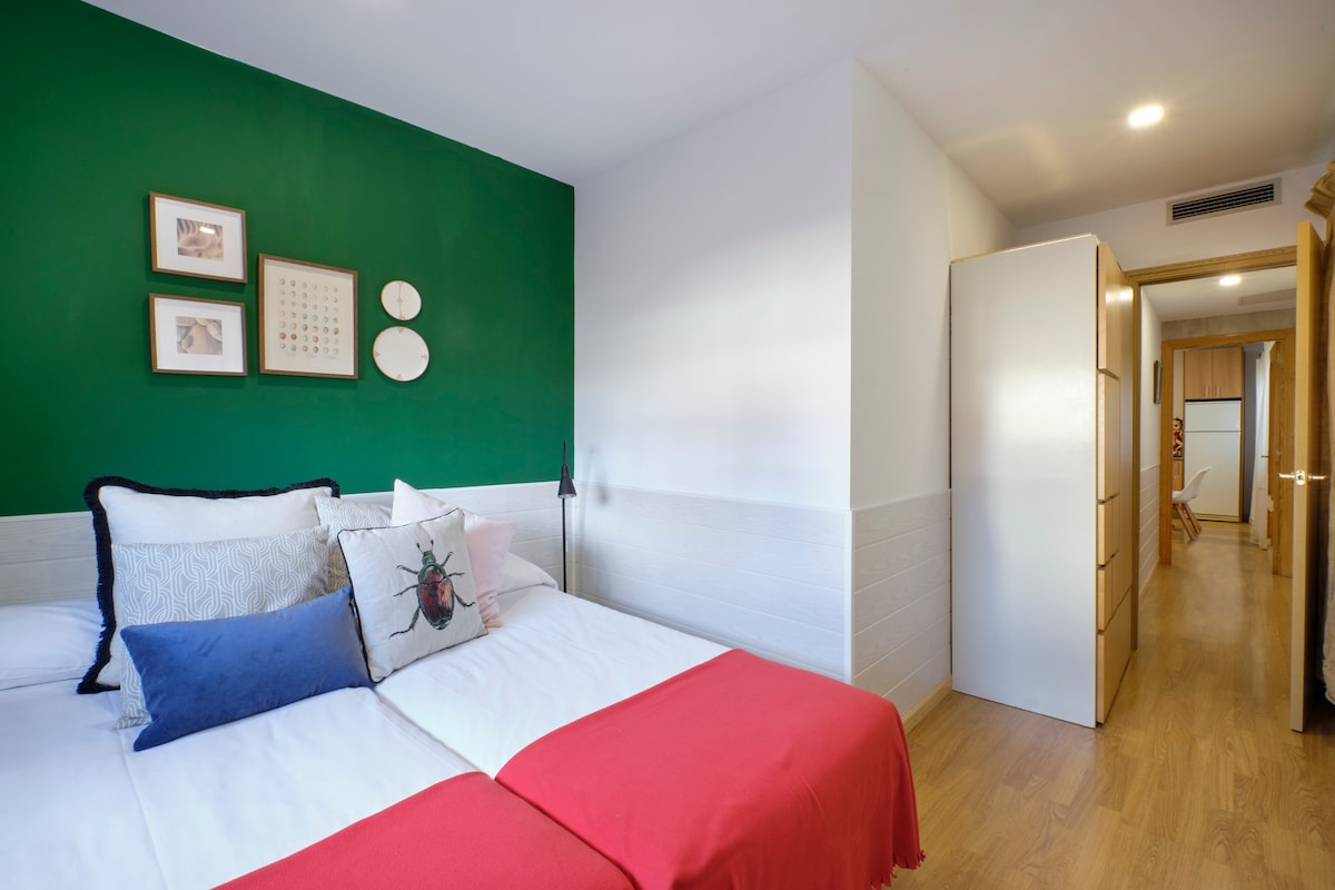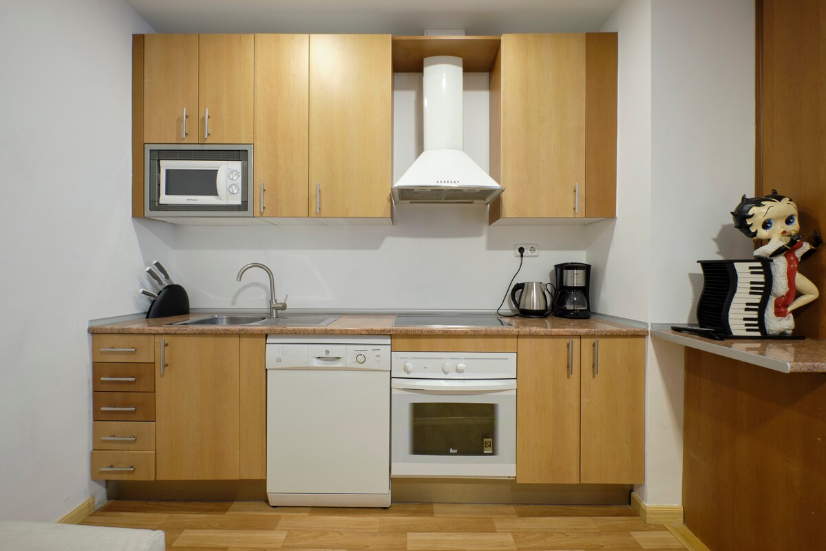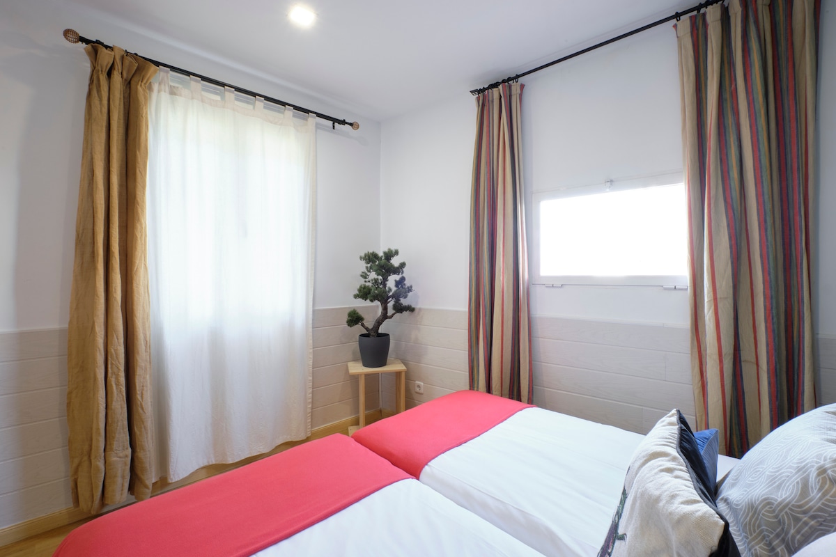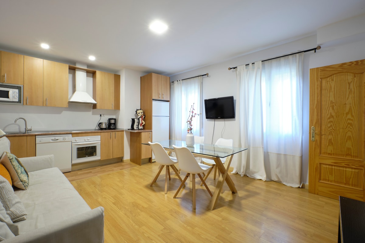 FREE WIFI. Fully equipped. It has one bedroom with a double bed, another with two single beds, living room with sofa bed, two bathrooms and kitchen. Very quiet