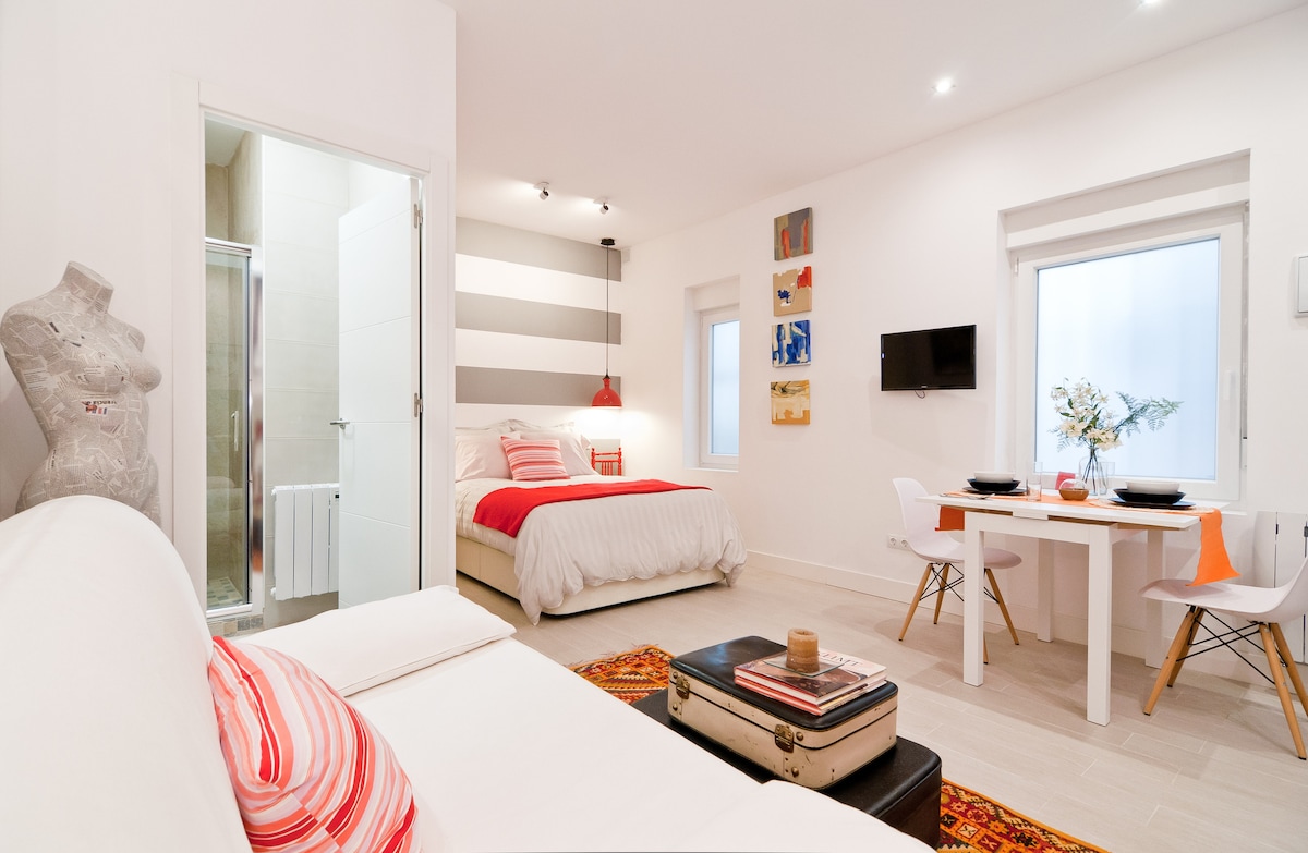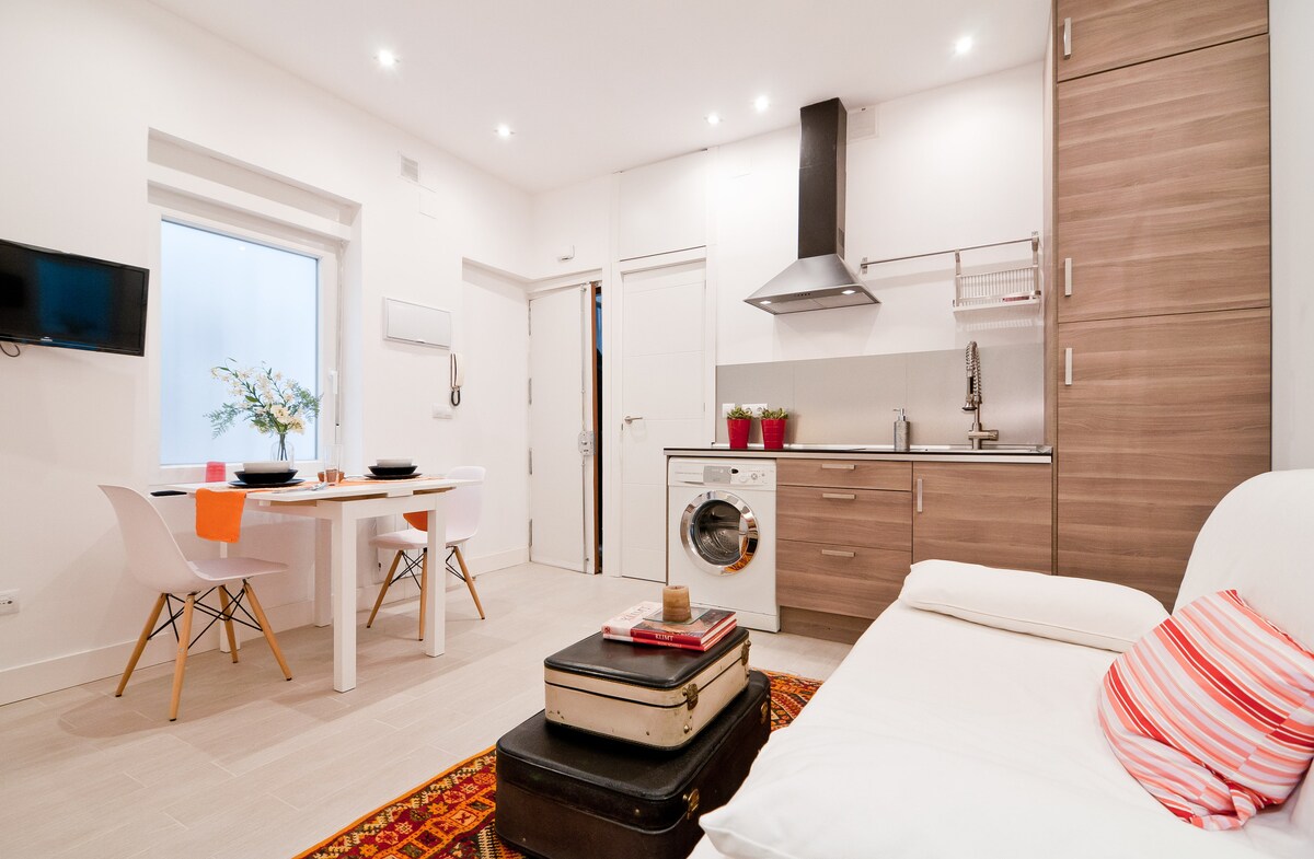There's only one word: excellent, Fantastic location, quiet street, but a short walk to shops, cafes and restaurants. With metro stations within walking distance. Since it's an indoor floor, the silence to rest after long days is appreciated. The apartment is very comfortable (we were 3 adults), between the bed and the sofa bed (huge and with a super comfortable mattress) we rested beautifully. Perfectly equipped and impeccable bathroom. Even the decoration denotes the good taste of its owner. Marta and her husband: kindness, education and friendliness on all four sides, the perfect homemade. Always willing to help with recommendations and guidance. Thank you very much for your attention, it has been an experience that we would repeat without hesitation!!!!!! We highly recommend this accommodation for those who want to spend a few days in Madrid, whether for work or leisure. Thanks Marta, see you next time! Great location, clean, modern, comfortable and well equipped. Marta and her husband very kind and friendly people. Totally recommend this place to stay at Madrid. Very close to the Madrid top tourist attractions (Prado or Reina Sofia museums, Plaza mayor, El Rastro...), metro stations within walking distance. Perfect for work days or holidays (good WIFI). Thanks Marta! we enjoyed a lot our stay in Madrid. Until the next!!!!