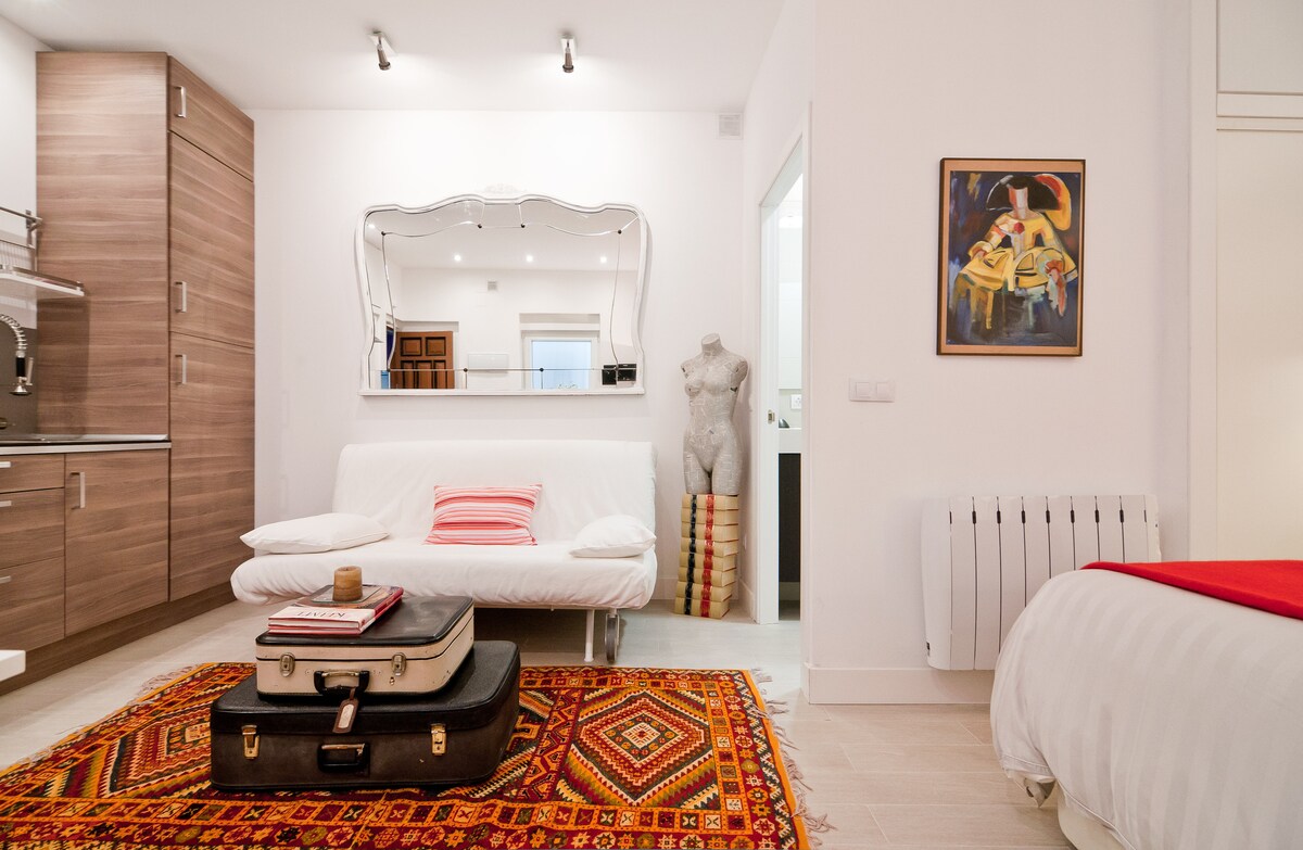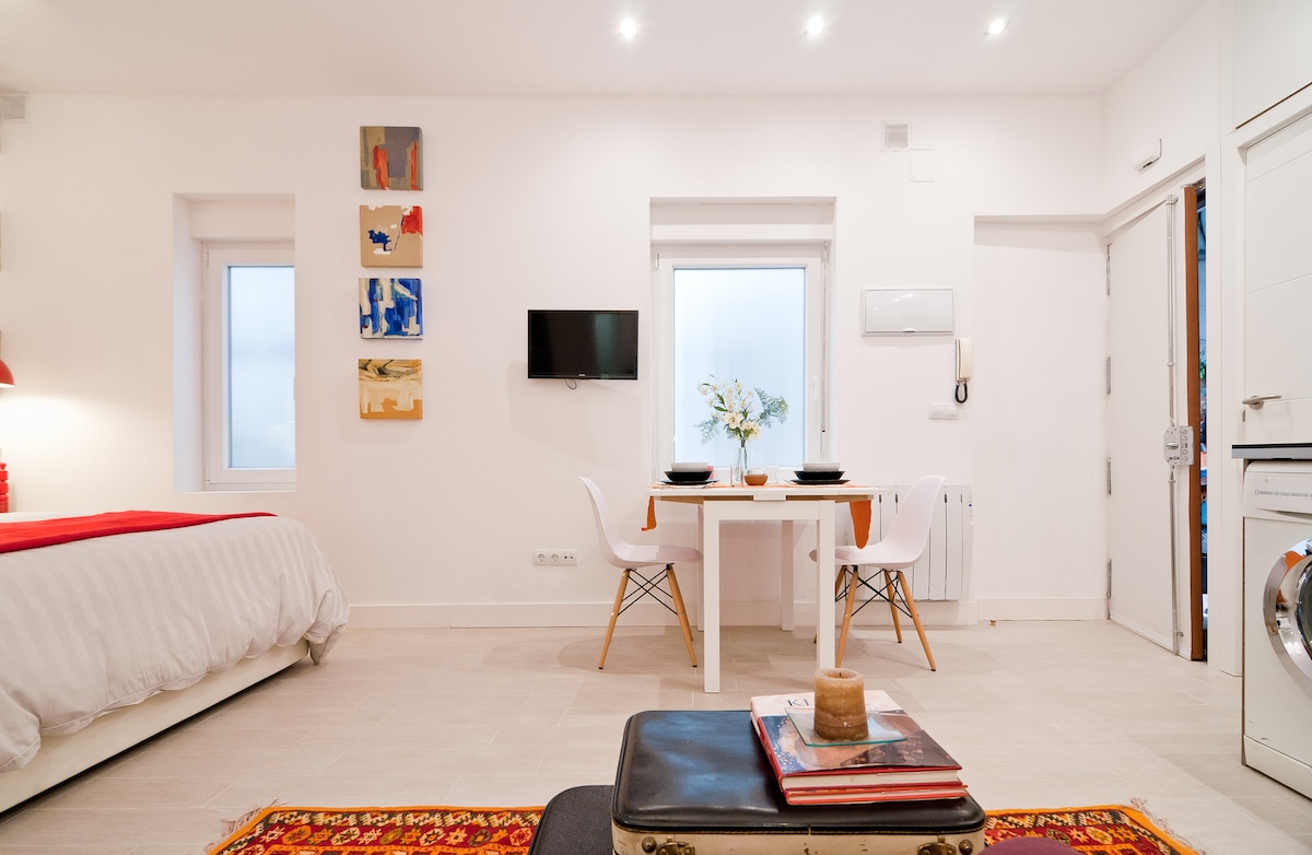 Marta and Adolfo are lovely people. They will give you tips on how to enjoy your stay in Madrid better. They're the kind of people you'd want as your friends. They even went over and above their obligation to us to wash our clothes because there's was construction being done outside the studio. The listing and pictures are accurate. The place is clean. They have a cleaning person who comes in to do the cleaning. The fixture are all modern and the place is excellently decorated. We were there when it got cold and there were no problems with the hot water and the heater. Although the place is small, it has 3 heaters for the comfort of their guests. It's not a big place but for 2 people, it's perfect. The studio is walking distance to Reina Sofia, The Prado and Thyssen. It is also near the Atocha metro station to get you anywhere you want in the city. If you need fastfood fare because you're in a hurry, then you're in luck; there's a nearby McDonald's, KFC and Burger King. Bottom line is we would stay at the apartment again. Don't hesitate with this one. It's a gem.